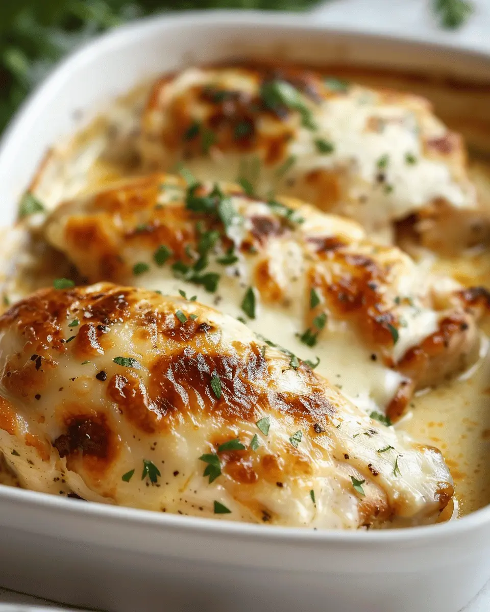 Once your chicken is nicely browned and your sauce is ready, it’s time to combine everything. Place the seared chicken breasts into a greased baking dish. Spoon the creamy mixture generously over each piece of chicken, ensuring they’re well coated. This allows every bite to be rich and flavorful.