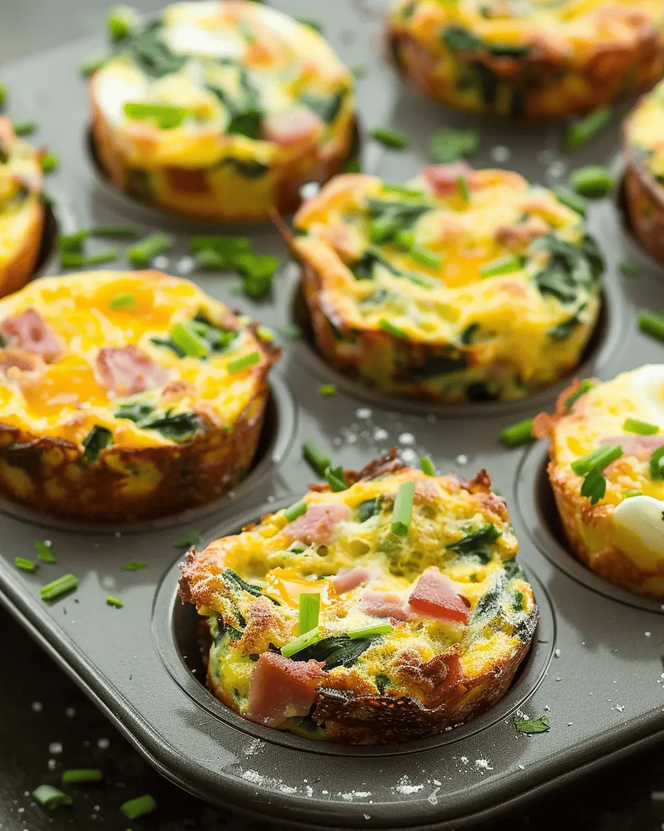 • Instructions: Mix the dry ingredients first, then fold in the chicken ham, cheese, and chives before baking at 400°F for about 15-20 minutes.