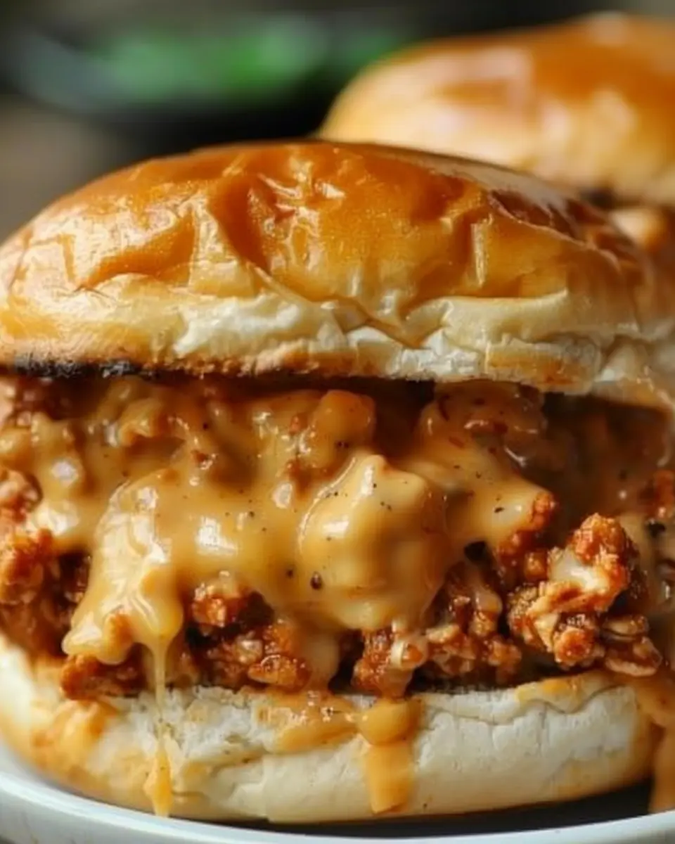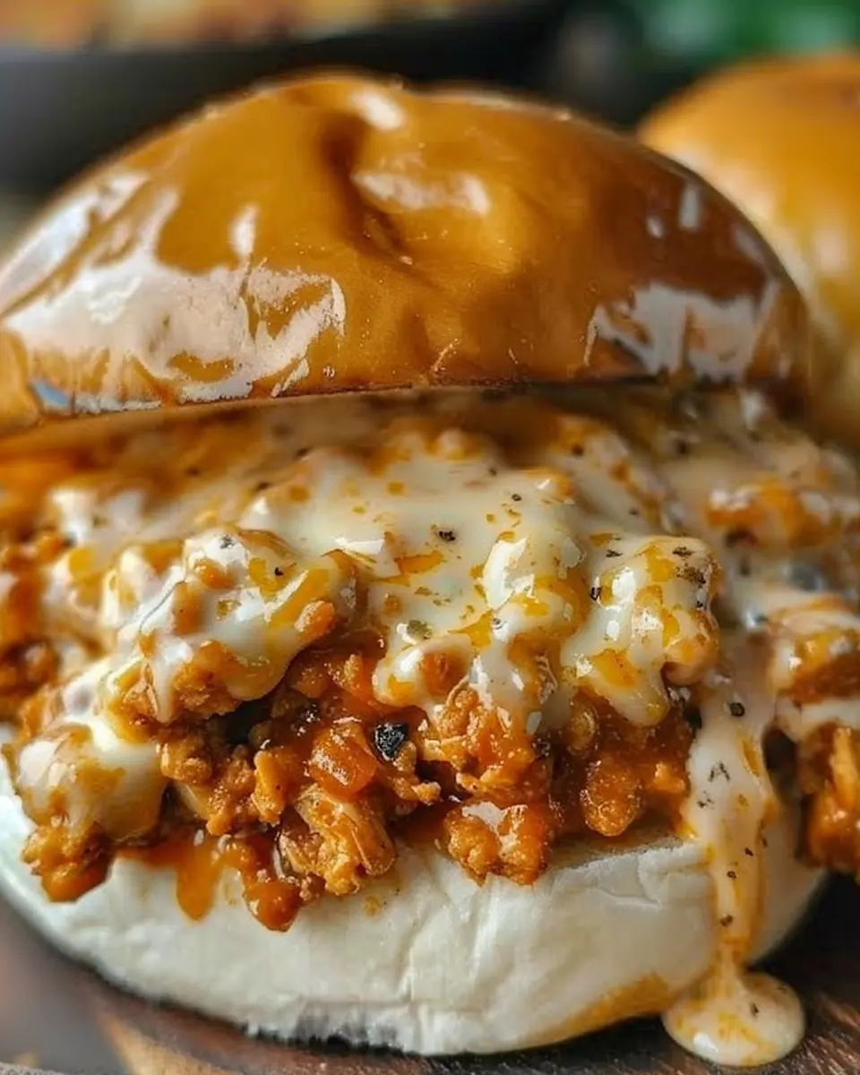 PrintCajun Chicken Sloppy Joes: Juicy Delight with Creamy Cheese Sauce