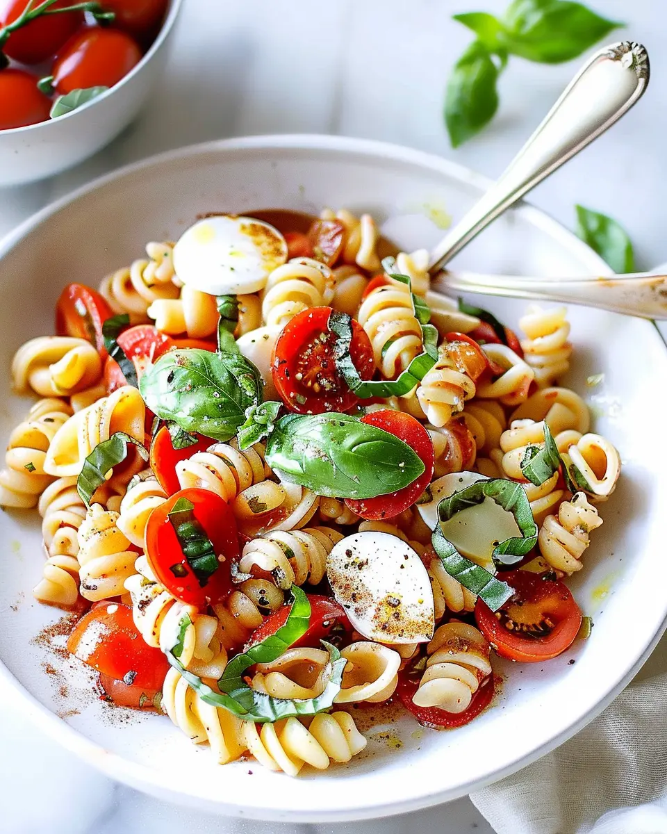 One of the many reasons to love Caprese pasta salad is its versatility. Whether you’re whipping it up for a casual lunch, a summer barbecue, or even a fancy dinner party, this dish adapts effortlessly to any occasion. It allows you to showcase seasonal produce while keeping your meal light yet satisfying. Plus, if you’re looking to impress your friends—or even just yourself—this salad can be the highlight of your spread.