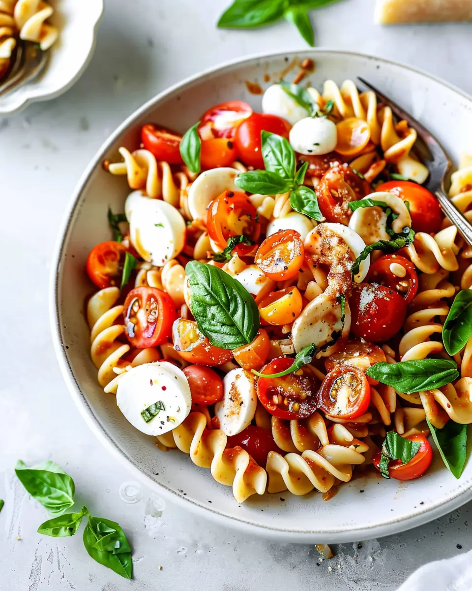 A refreshing and delicious Caprese pasta salad, perfect for a quick dinner option.