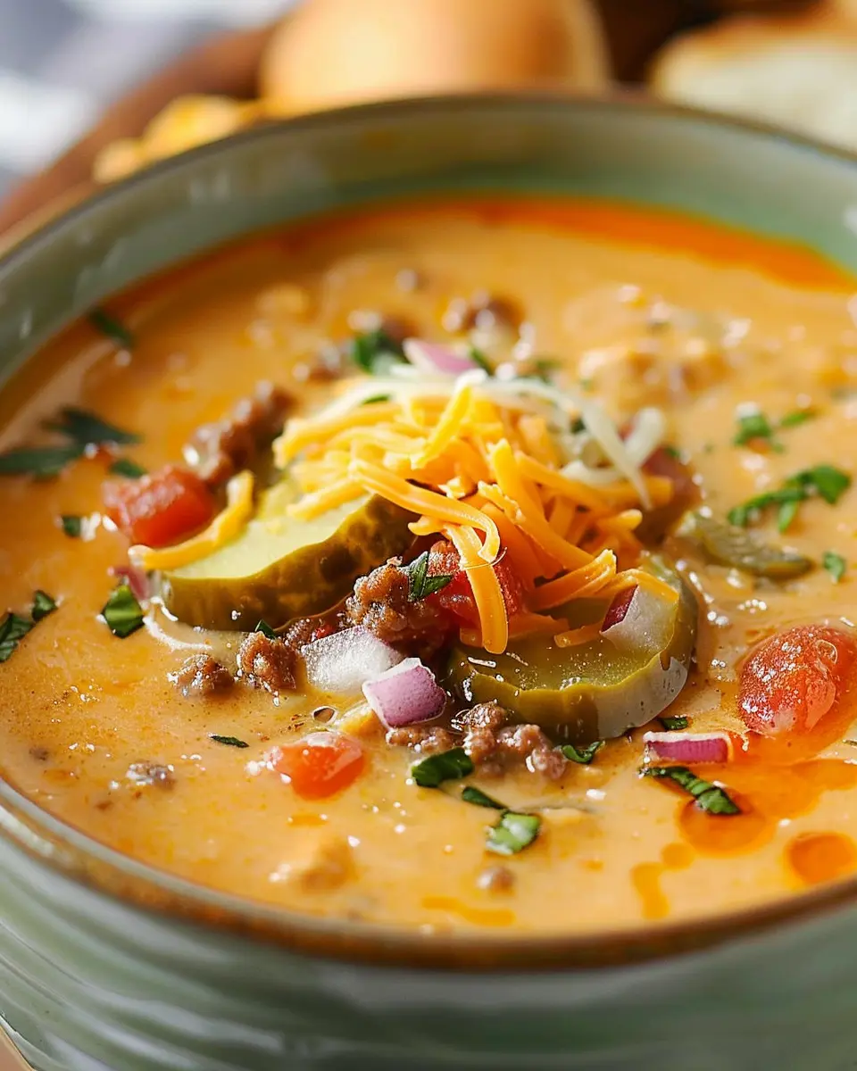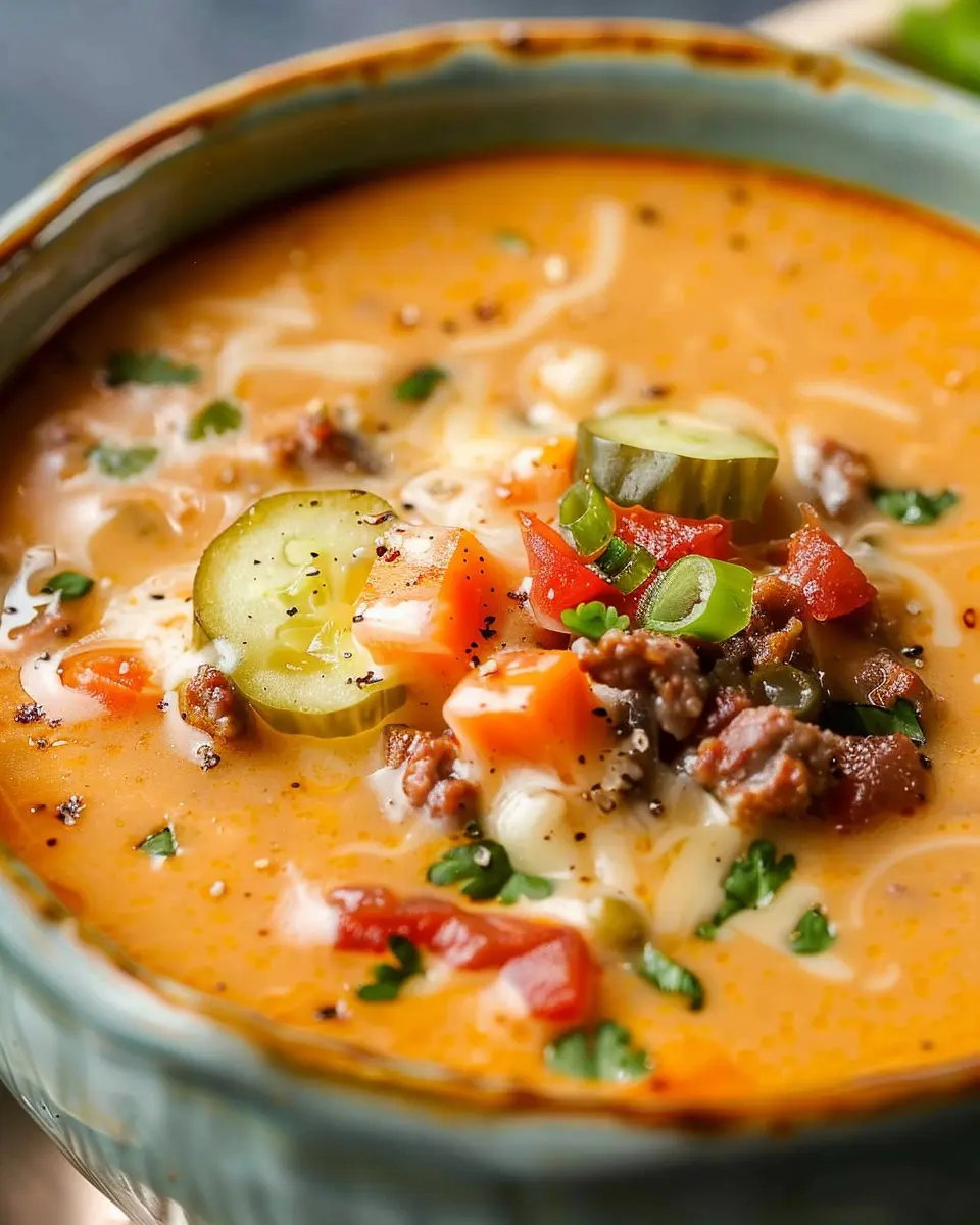 PrintCheeseburger Soup: Easy and Indulgent Recipe with Turkey Bacon