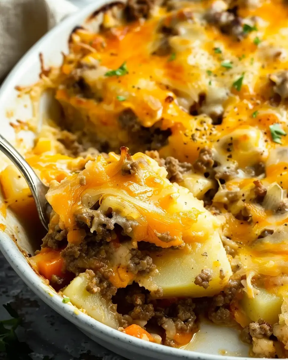 Keywords: Cheesy Ground Beef and Potato Casserole, Comfort Food, Easy Dinner
