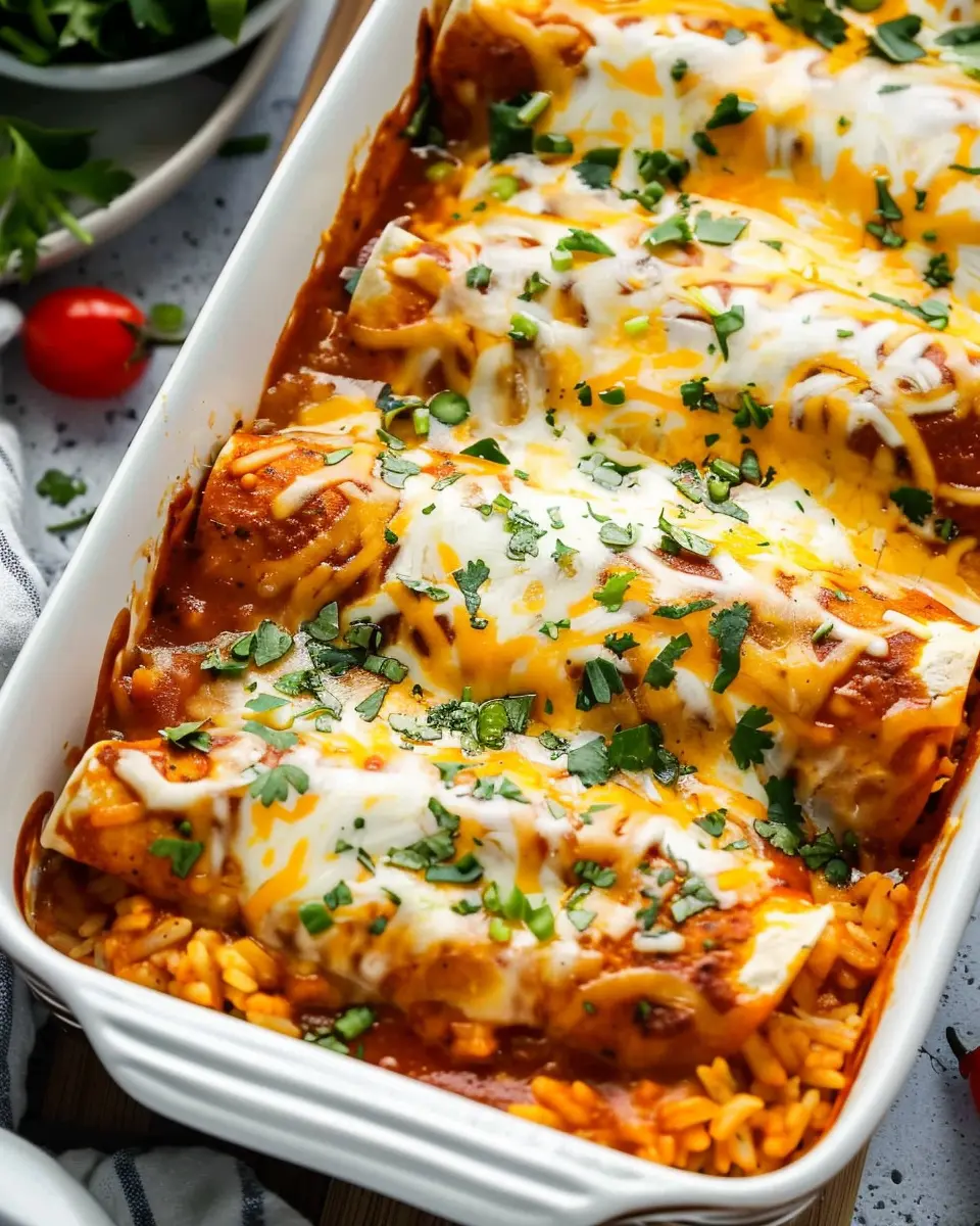 So there you have it! Preparing Chicken and Rice Enchiladas is accessible, fun, and a guaranteed crowd-pleaser. Don’t forget to top your enchiladas with fresh cilantro or green onions for a burst of color and flavor. Enjoy your delicious creation!