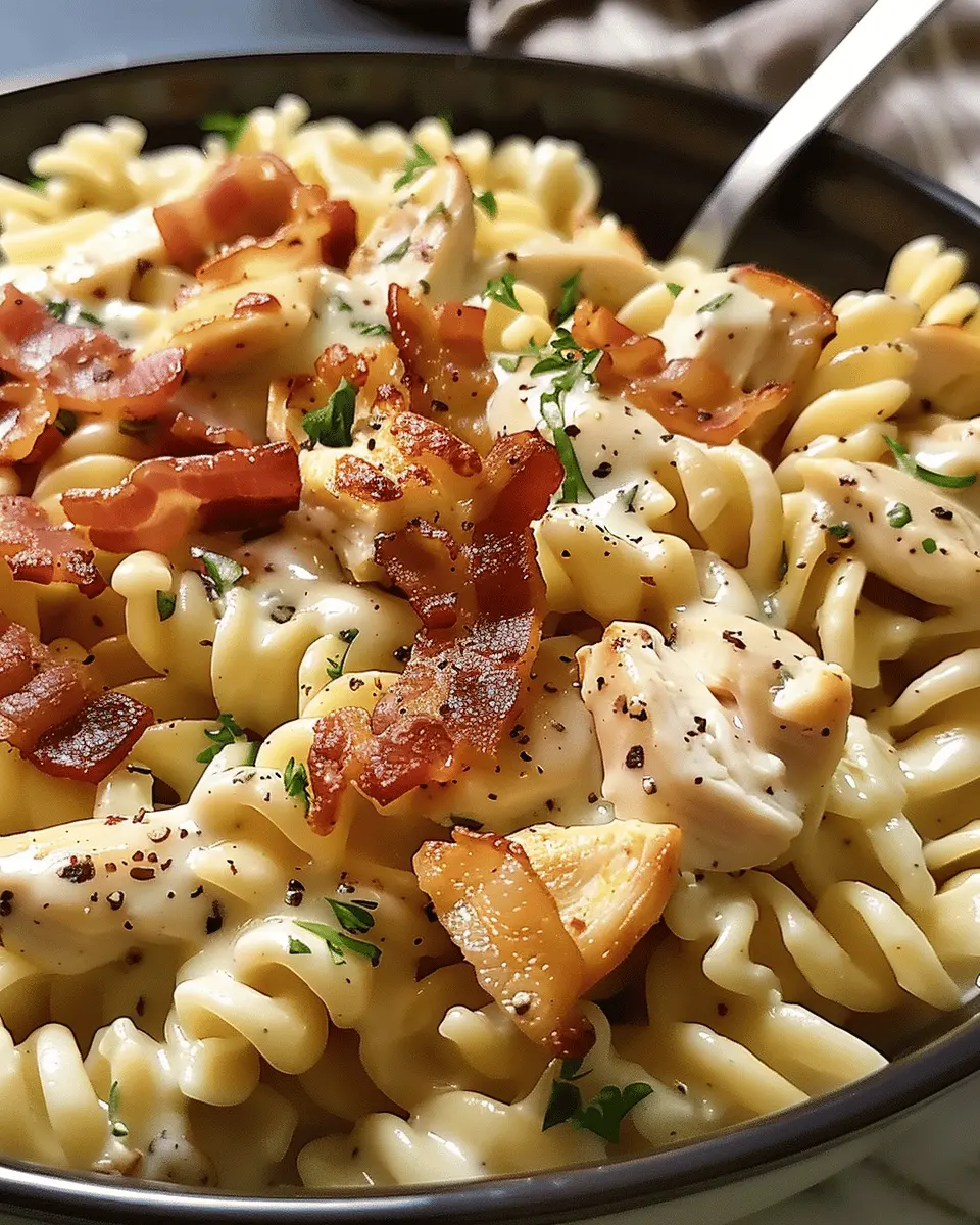Keywords: Chicken Bacon Ranch Pasta, easy comfort food, weeknight meals