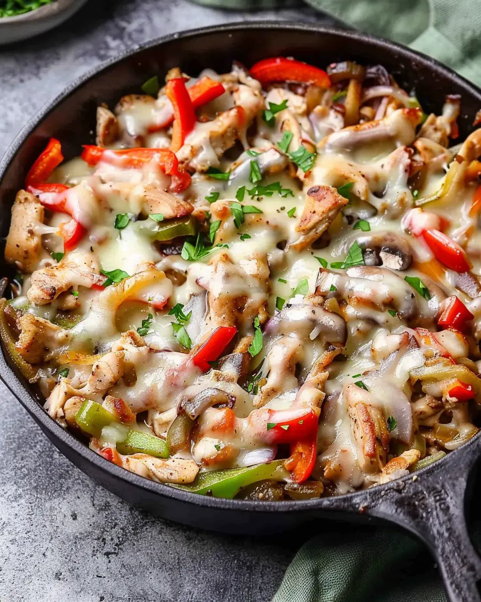 PrintChicken Cheesesteak Skillet: A Juicy Twist on Comfort Food