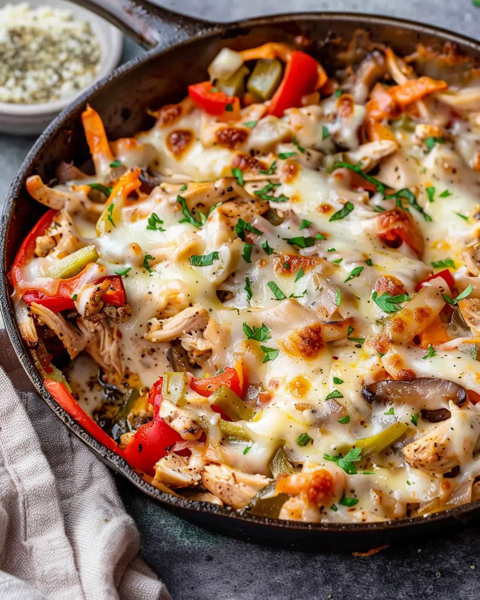 If you’re looking to kick things up a notch, the spicy chicken cheesesteak skillet is your go-to. Start by marinating your diced chicken in a mix of hot sauce, garlic powder, and a splash of lemon juice for about 30 minutes. Sauté your chicken with sliced green bell peppers, onions, and jalapeños. Don’t forget to top it off with pepper jack cheese for an extra heat boost. For an additional kick, sprinkle on some crushed red pepper flakes just before serving. This variation is perfect for those who crave a little excitement in their meals.