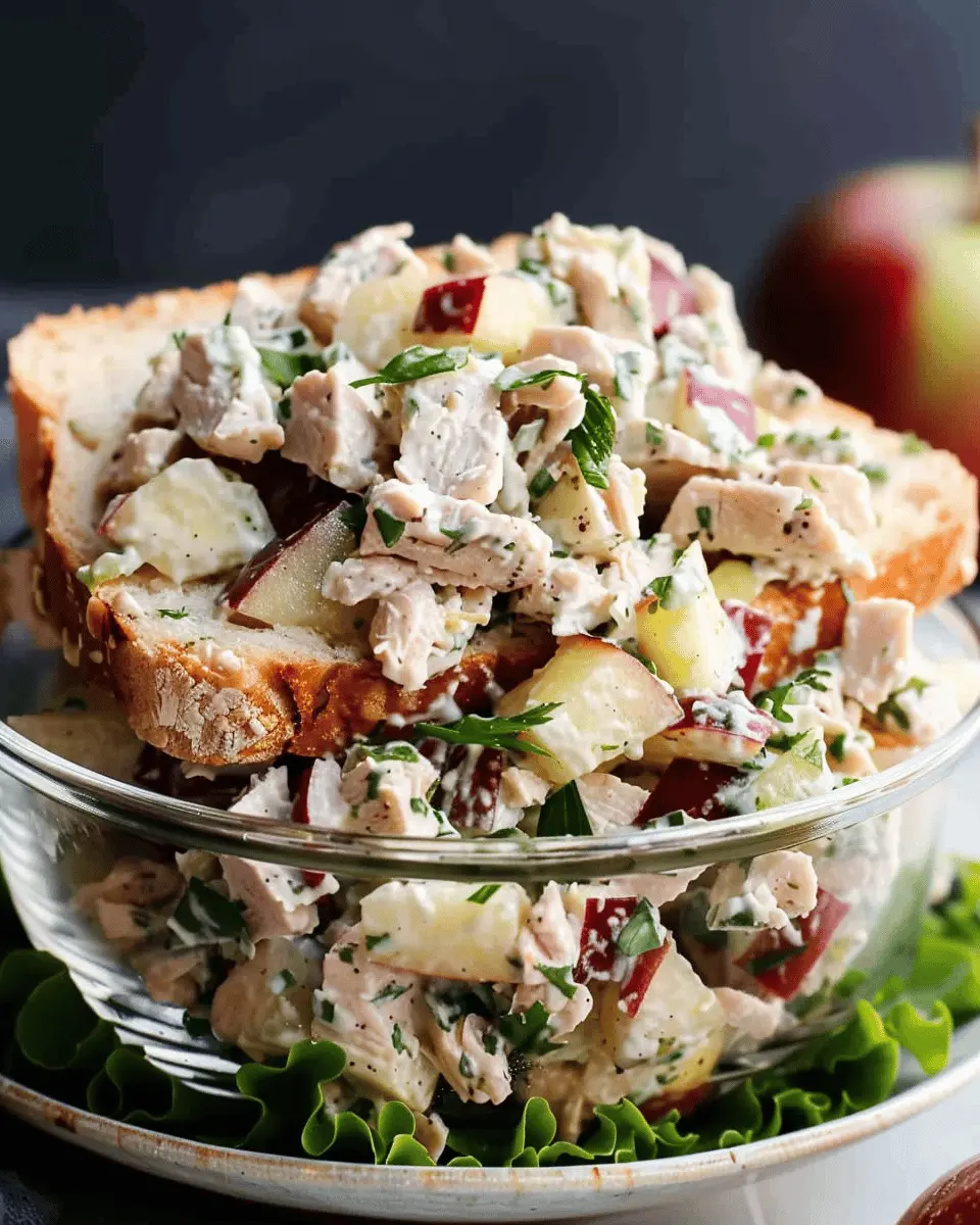 Delight in the refreshing flavors of chicken salad with apples, complemented by crunchy turkey bacon. This easy recipe is perfect for a quick lunch or a light dinner.
