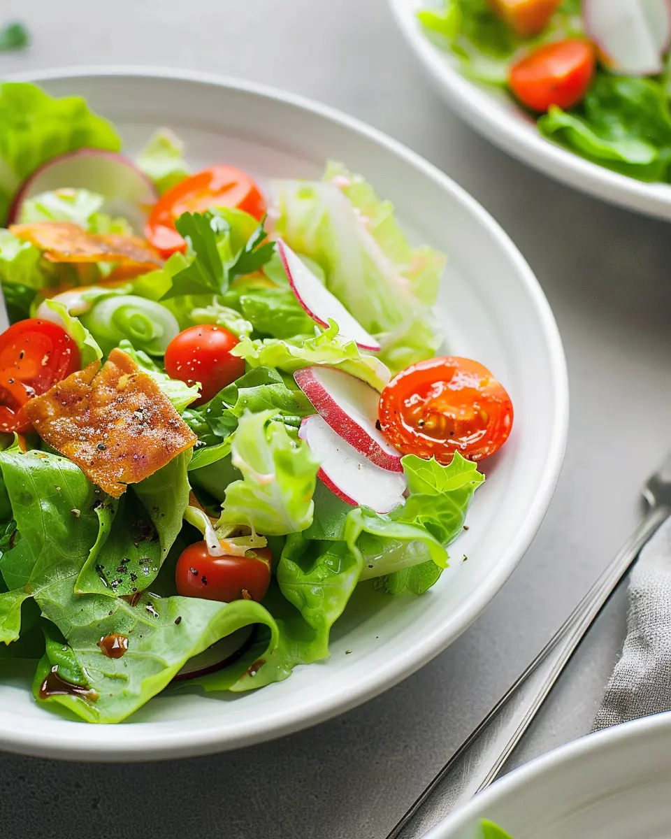 When it comes to homemade meals, a classic house salad is an unbeatable choice. It offers a delightful mix of fresh vegetables, textures, and colors, making your dining experience visually appealing and nutritious. This versatile dish is not only easy to prepare but can also be customized with toppings like turkey bacon or chicken ham, catering to various taste preferences.