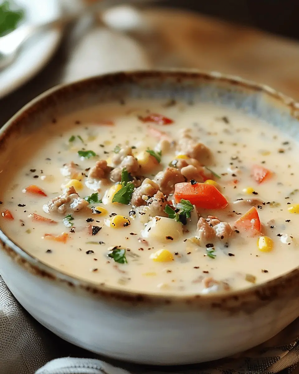 This creamy cowboy soup recipe is a comforting dish that combines the rich flavors of turkey bacon with hearty vegetables, perfect for warming up on a cold day.