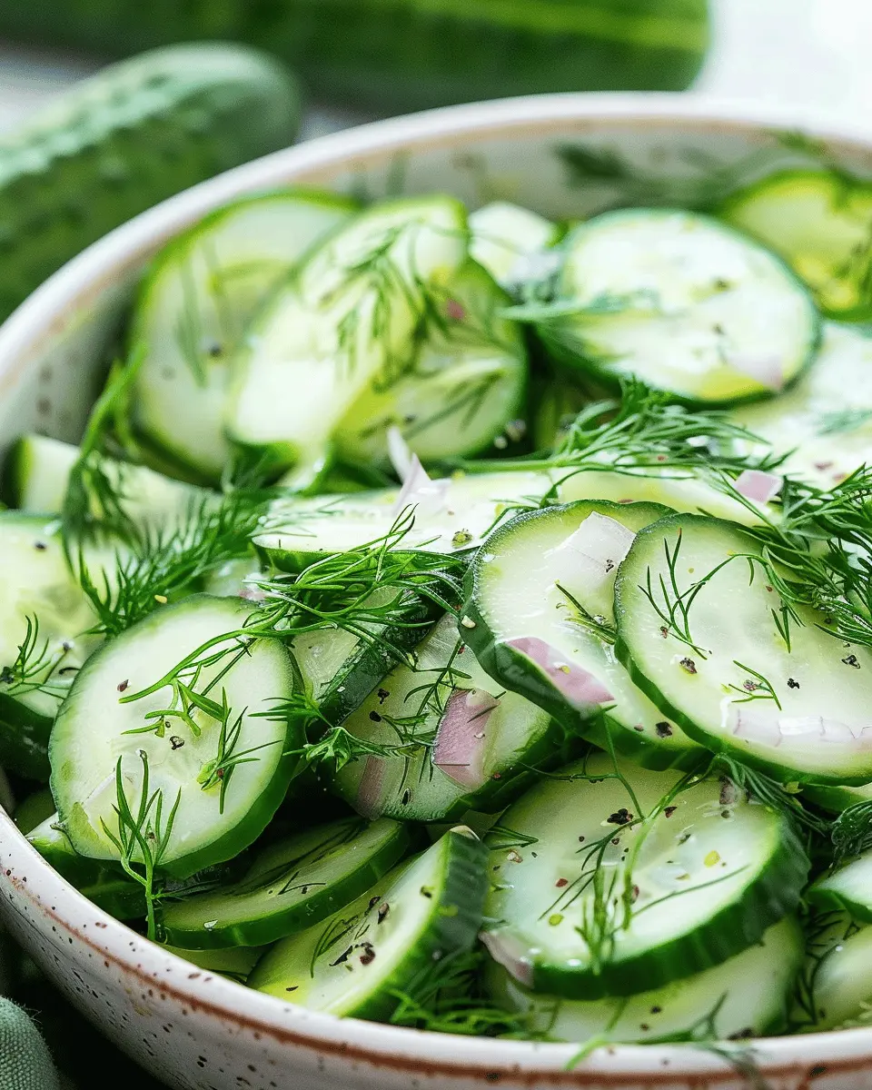 So why not invite some friends over and share this delicious dish? They’ll appreciate your culinary skills, and you’ll love how easy it was to prepare. Enjoy your fresh and zesty cucumber dill salad—it’s sure to become a favorite!
