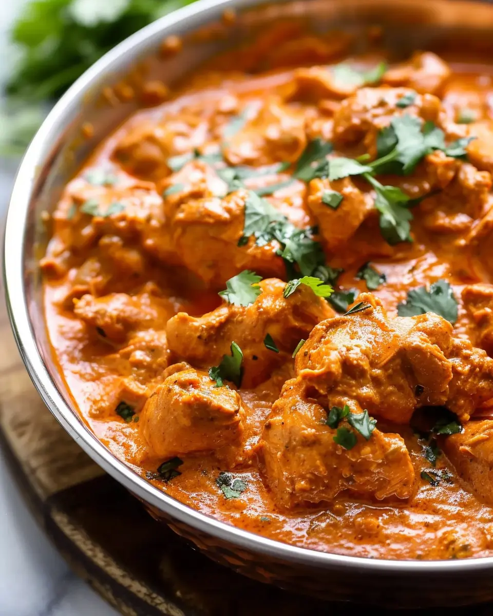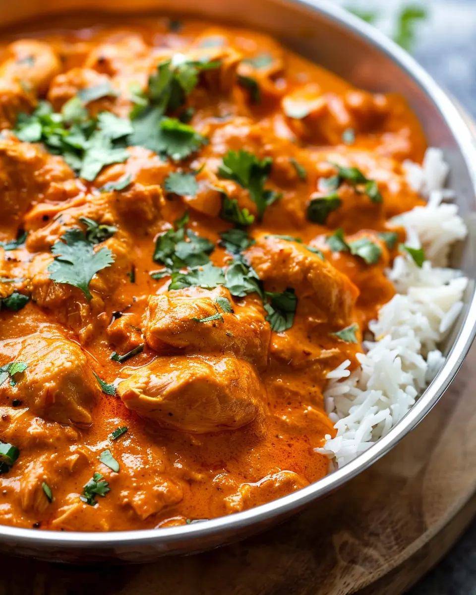 Now for the best part—serving! Ladle the buttery chicken over a bed of fluffy basmati rice or with soft naan for a truly indulgent meal. Garnish with fresh cilantro for a pop of color and freshness. If you enjoy a bit of zing, a squeeze of lemon can add an extra layer of flavor!
