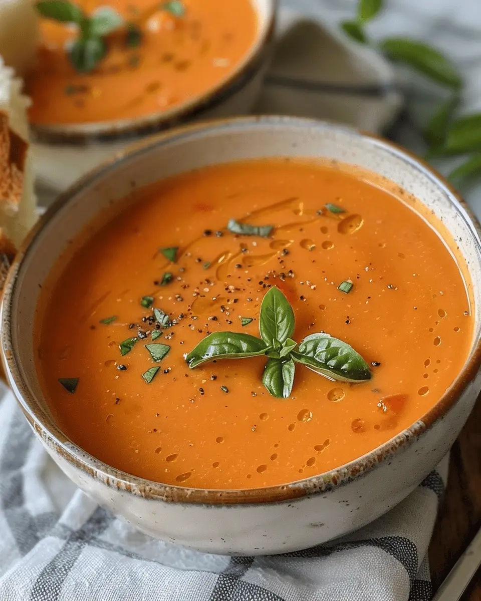 If you love the classic flavor combination, this variation of easy creamy tomato soup recipe will steal your heart. To make a delightful tomato basil soup, start with fresh basil leaves. Add about a cup of chopped basil during the blending stage, and you’ll be amazed at the burst of flavor. This herb not only adds freshness but also has some impressive health benefits, including anti-inflammatory properties. You can also substitute a bit of the cream with coconut milk for an interesting twist that enriches the flavor profile while keeping it creamy.