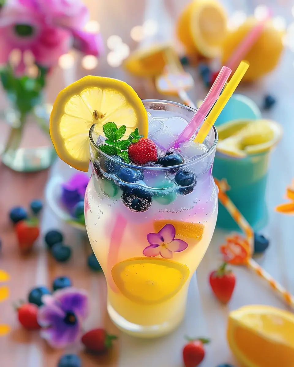 Want to elevate your enchanted unicorn lemonade presentation? Consider these fun and creative garnishing ideas: