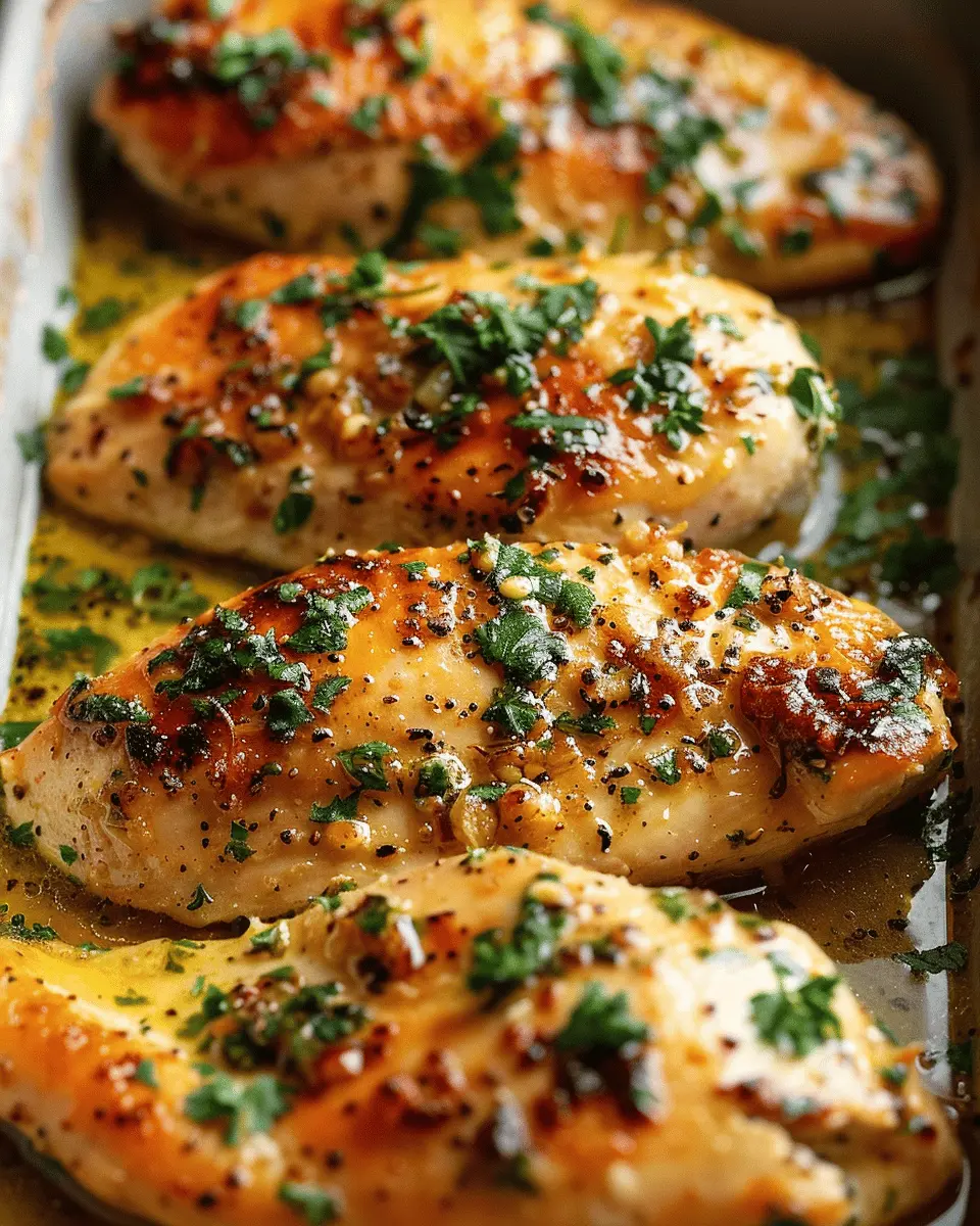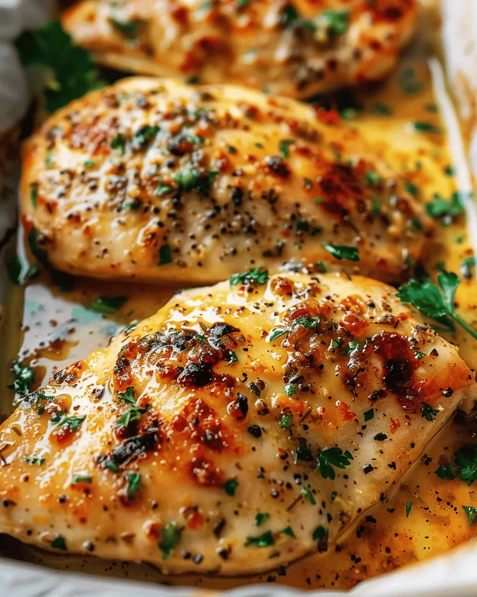 A delightful recipe for garlic butter baked chicken breasts that guarantees juicy and flavorful results.