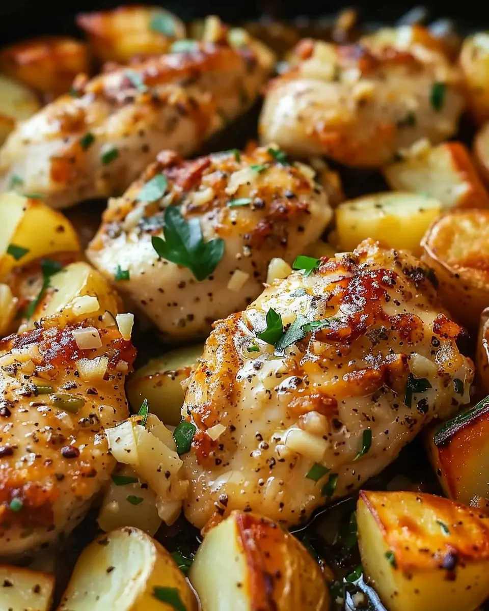 In this quick and delicious recipe, Garlic Parmesan Chicken and Potatoes brings together tender chicken, crispy potatoes, and a rich garlic-parmesan coating that’s hard to resist. Not only is it easy to prepare, but it’s also incredibly satisfying—a perfect meal after a long day.