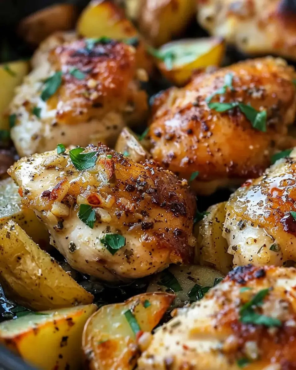 For those who crave a bit of heat, a spicy version can be a game-changer. Just add some crushed red pepper flakes or a splash of hot sauce to your garlic and butter mixture before it coats the chicken and potatoes. This fiery twist adds excitement to each bite and can make your dinner feel like a restaurant experience right at home. You can also sprinkle cayenne pepper for an extra kick—just be sure to adjust according to your spice tolerance!