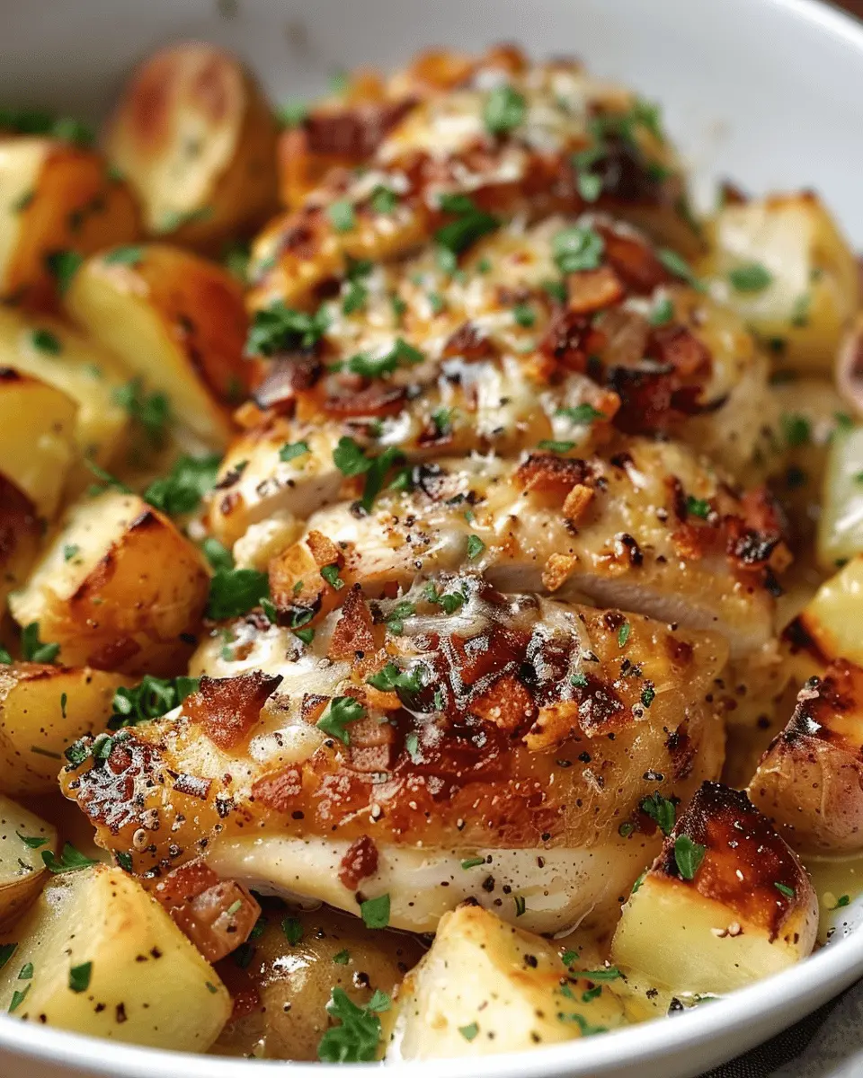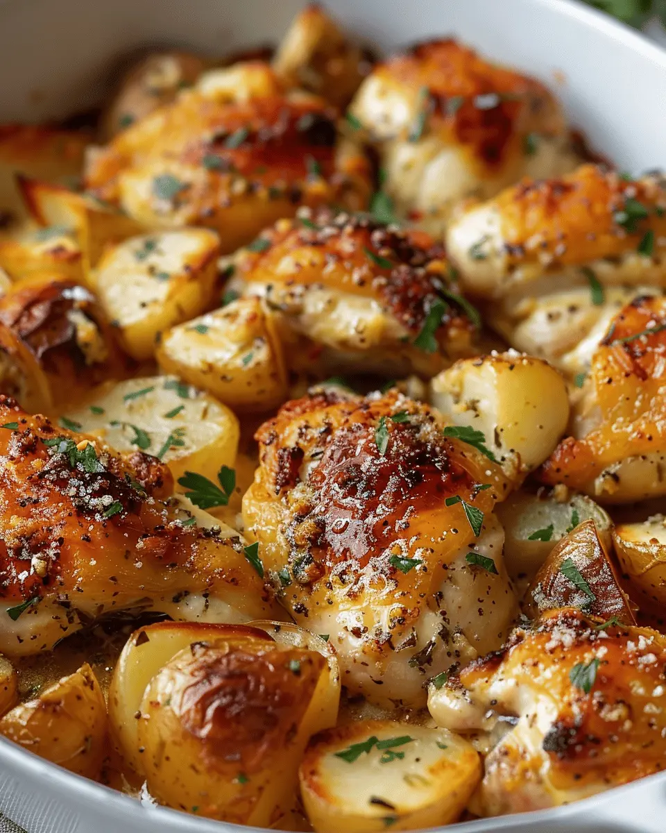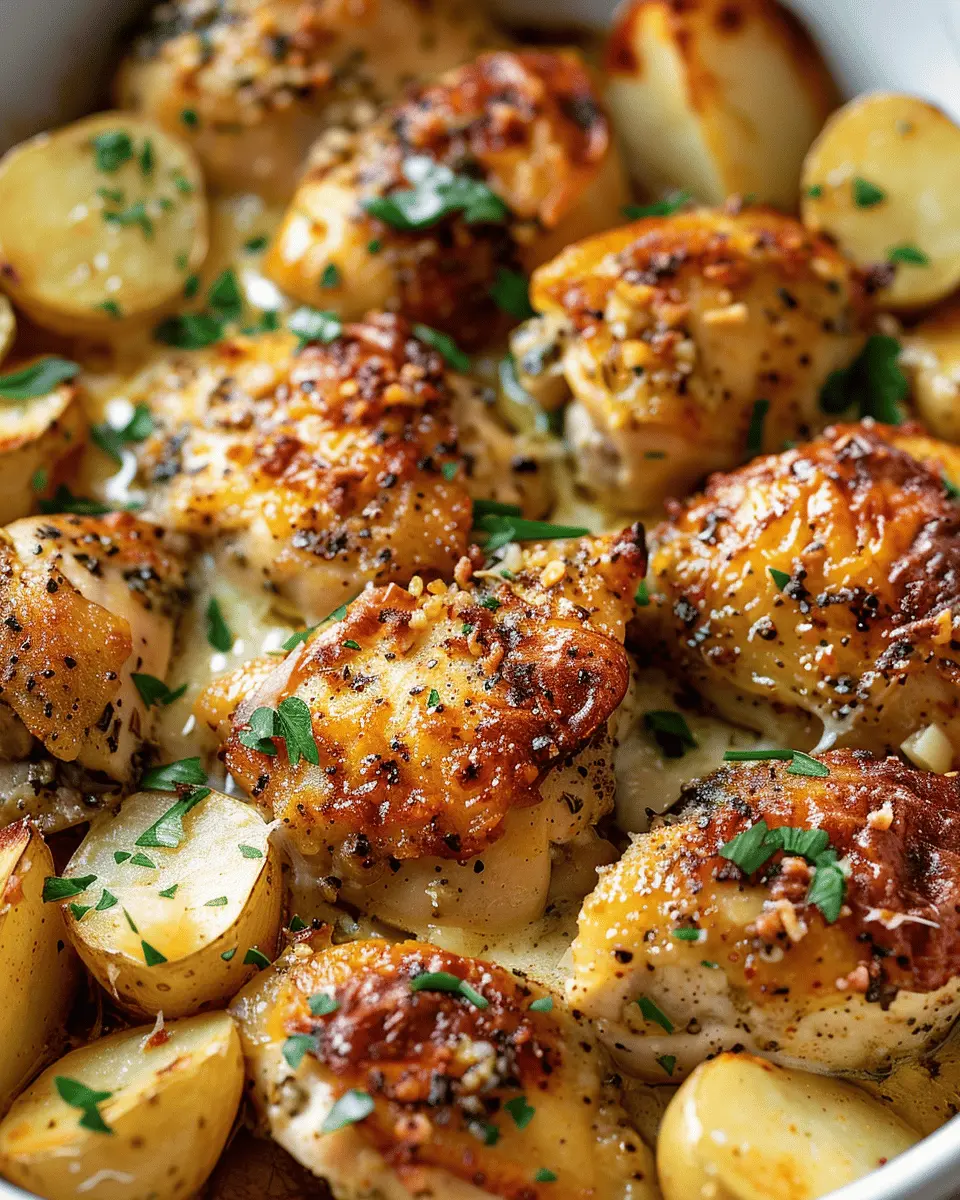 In summary, garlic parmesan chicken and potatoes is a delightful dish that combines robust flavors with comfort, making it perfect for a weeknight dinner or a cozy gathering. The crispy textures from the potatoes complement the juicy chicken, while the garlic and parmesan create a mouthwatering aroma that will have you coming back for seconds. Plus, it’s an easy one-pan recipe that minimizes cleanup — a win-win for busy professionals like us. Be sure to experiment with herbs and spices to find your perfect blend. For more recipe ideas, check out sites like Food Network or BBC Good Food to inspire your culinary adventures!