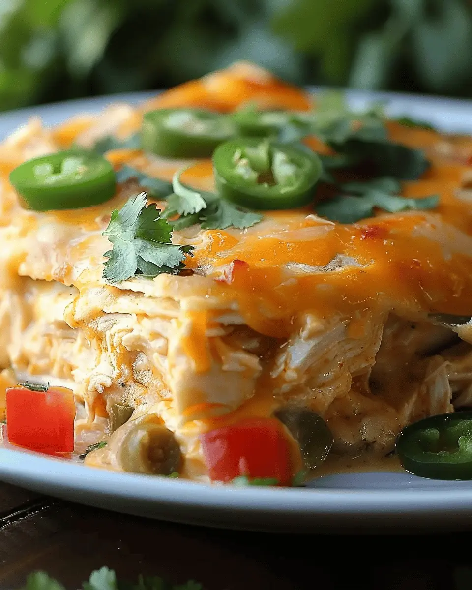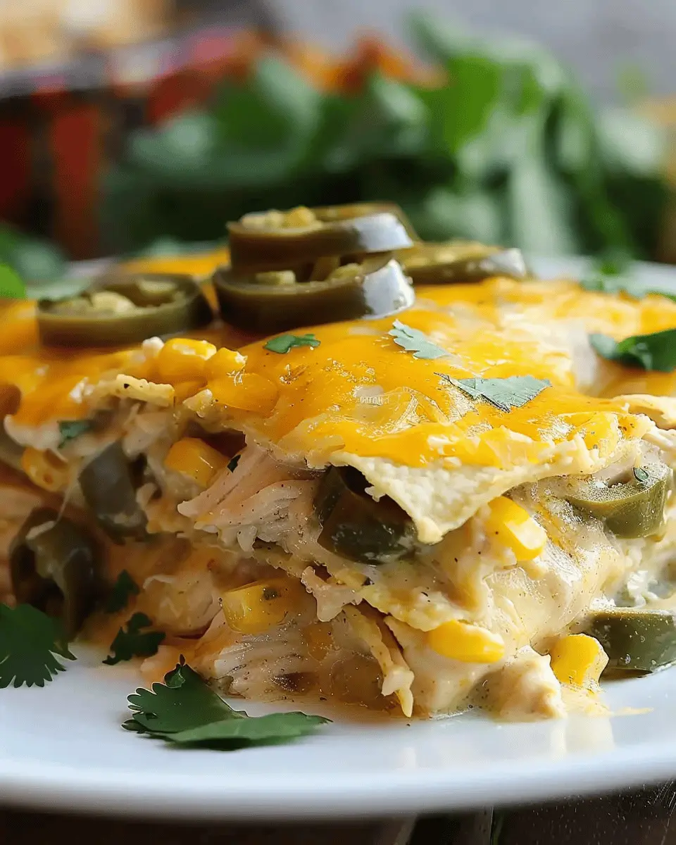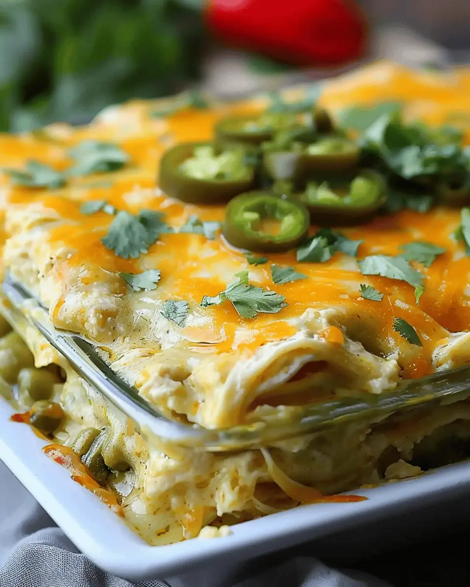 In conclusion, the Green Chile Chicken Enchilada Casserole is more than just a meal; it’s a delightful way to bring friends and family together over a comforting dish. With layers of tender chicken, zesty green chiles, and gooey cheese, it strikes the perfect balance between flavor and convenience. Whether it’s a weeknight dinner or a weekend gathering, this casserole is sure to impress. Plus, it’s versatile! You can easily adapt the recipe to fit various dietary needs and preferences. So why not give it a try? Your taste buds will thank you!