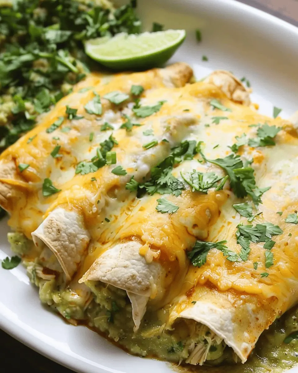 Delicious and comforting green enchiladas filled with chicken, perfect for any occasion.