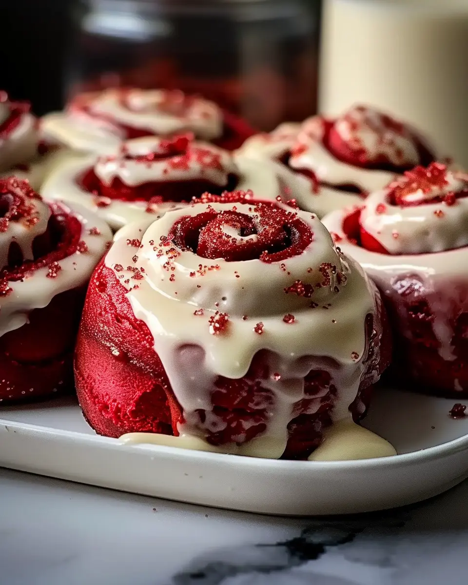 A delicious and indulgent recipe for red velvet cinnamon rolls that are fluffy, rich, and perfect for any occasion.