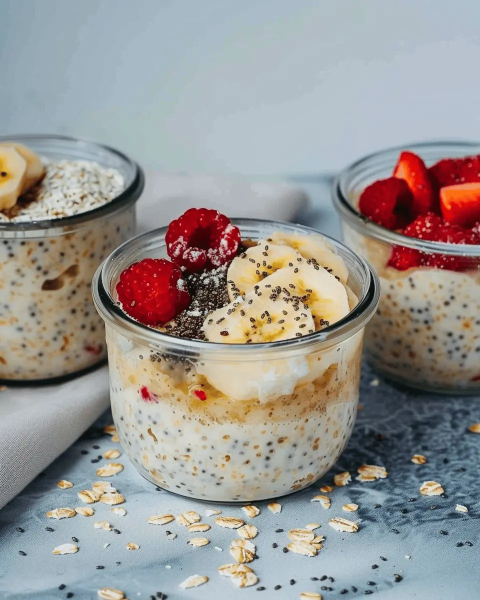• Muscle Maintenance: For those of you hitting the gym or leading an active lifestyle, protein is essential for muscle repair and growth. Adding high-protein ingredients to your overnight oats means you’re fueling your body effectively after workouts.