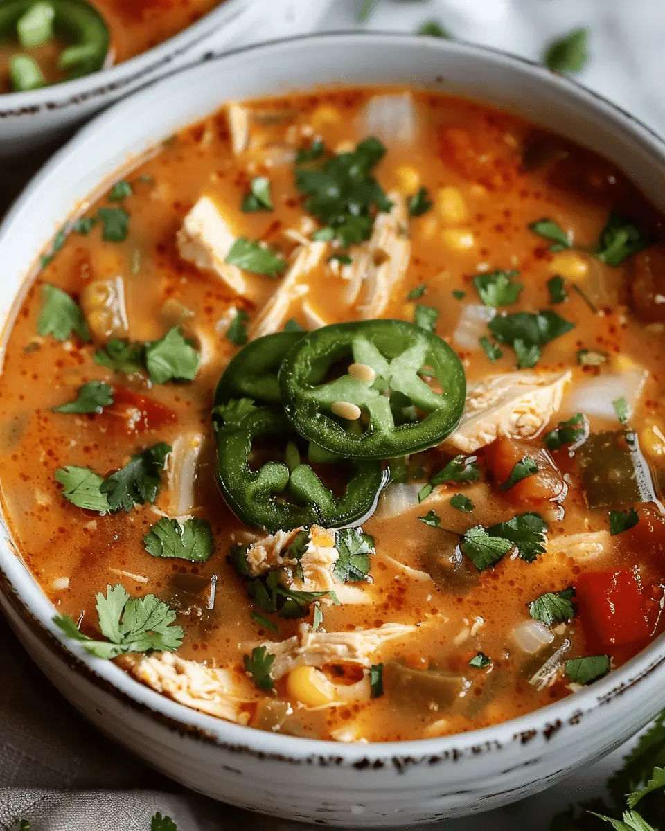 Imagine coming home after a long day, the aroma of savory spices greeting you as you enter the kitchen. That’s what you can expect with this hearty soup. Packed with shredded chicken, vibrant vegetables, and a spice blend that warms your soul, each spoonful is a celebration of flavors.