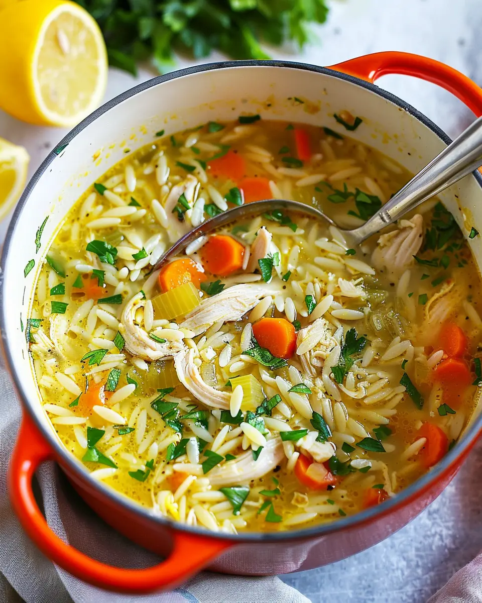 This Lemon Chicken Orzo Soup is a comforting and easy recipe filled with juicy chicken, fresh vegetables, and tender orzo pasta, perfect for any meal.