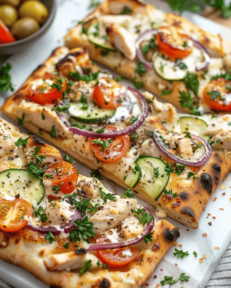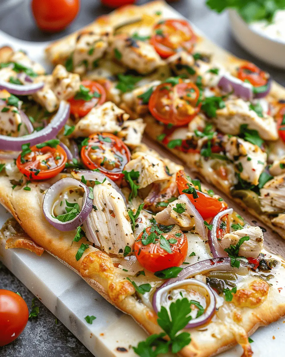 Let’s talk about versatility! The Mediterranean Chicken Flatbread can be customized to suit your taste. Maybe you love a hint of spice—add some sliced jalapeños. If you’re in the mood for a refreshing twist, a handful of fresh arugula or spinach can elevate your dish. The possibilities are endless, and that’s what makes this flatbread a hit among both seasoned chefs and cooking novices.