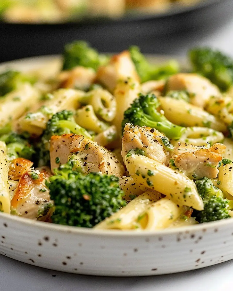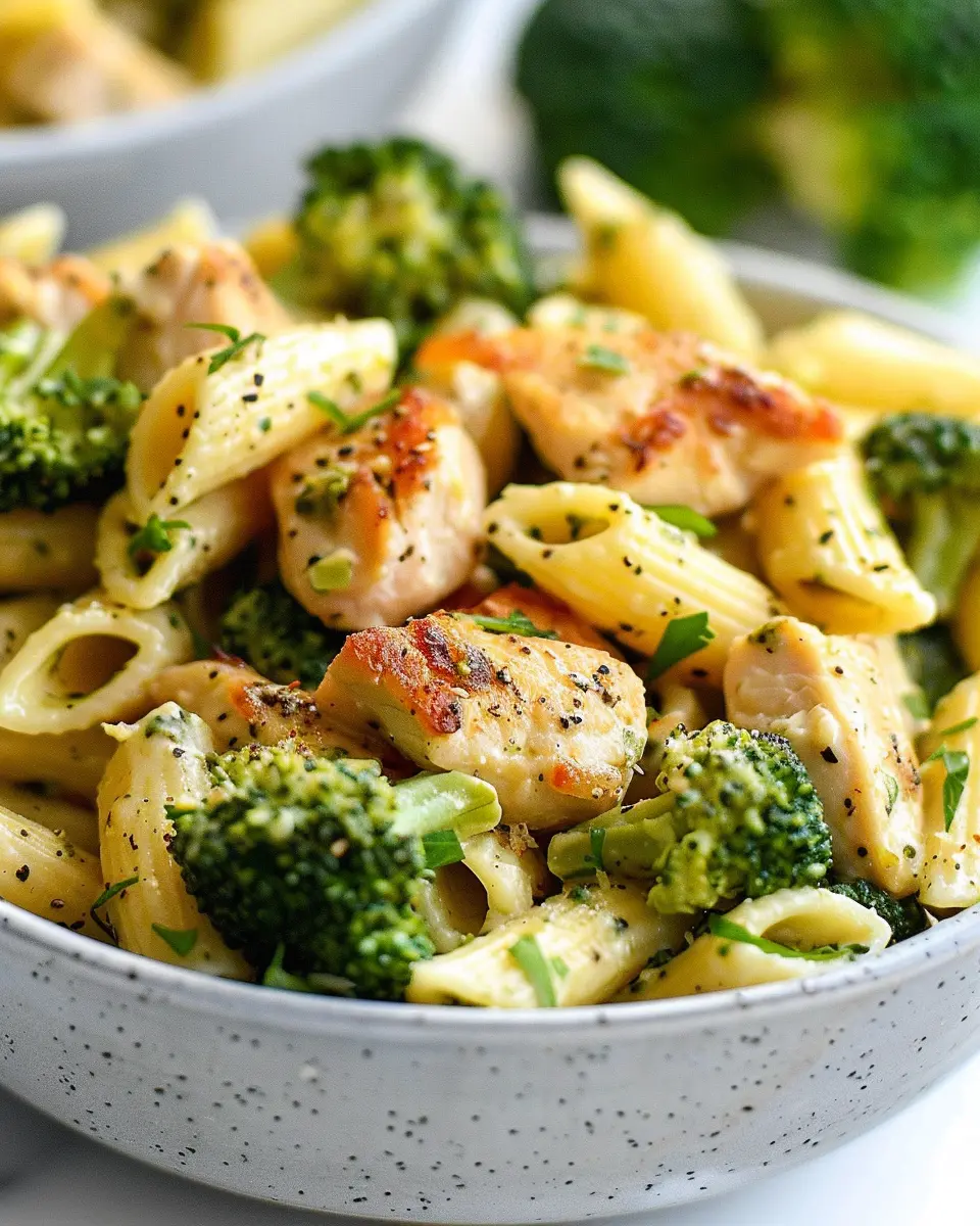 A quick and easy one-pan recipe that brings together chicken, broccoli, and pasta for a delicious weeknight meal.