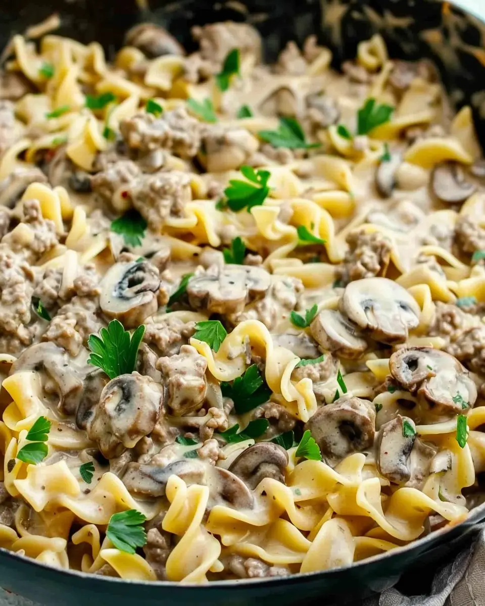 A simple and delicious weeknight dinner featuring ground beef, mushrooms, and a creamy sauce.
