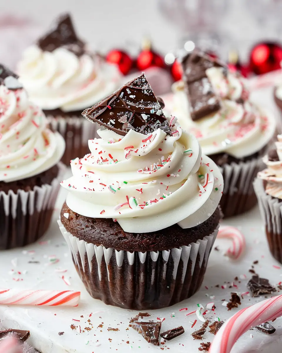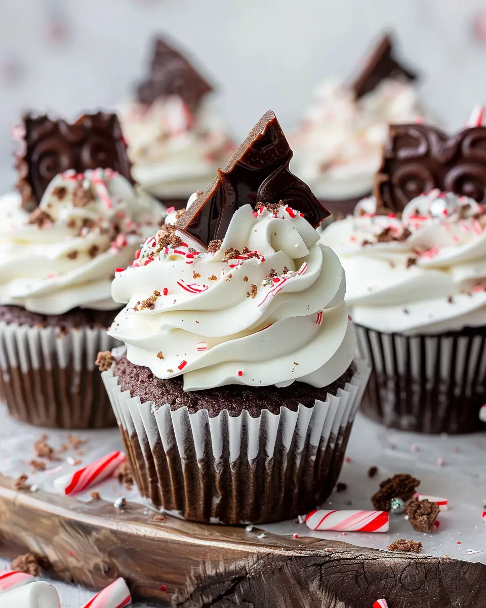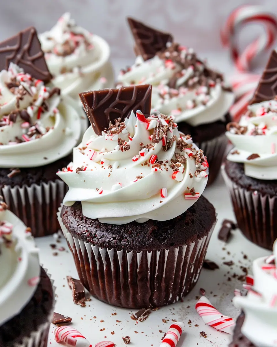 Indulge in the festive flavors of peppermint and chocolate with these delightful cupcakes, perfect for gatherings.