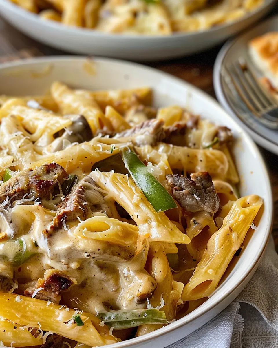 Keywords: Philly Cheesesteak Pasta, Comfort Food, Easy Pasta Recipes