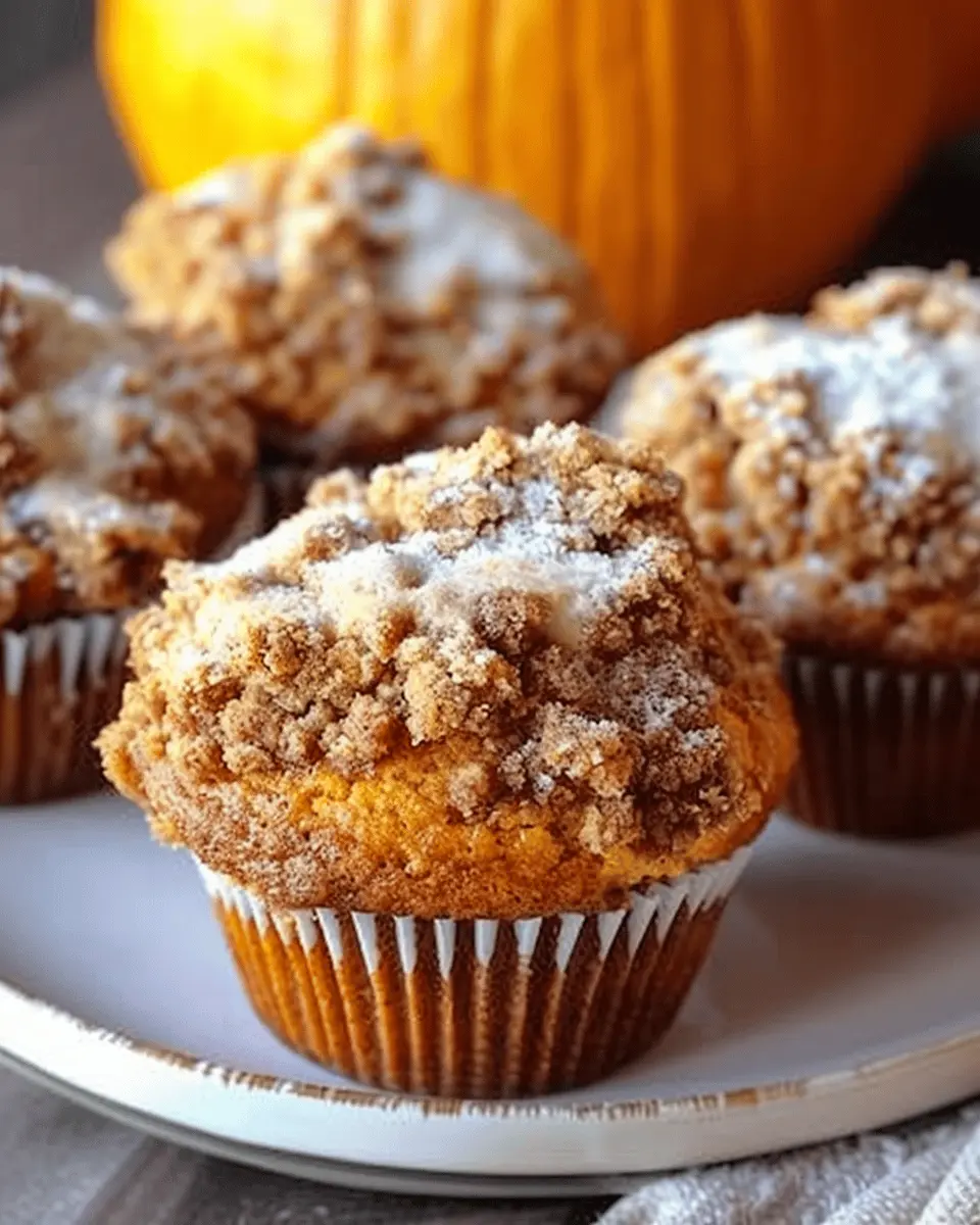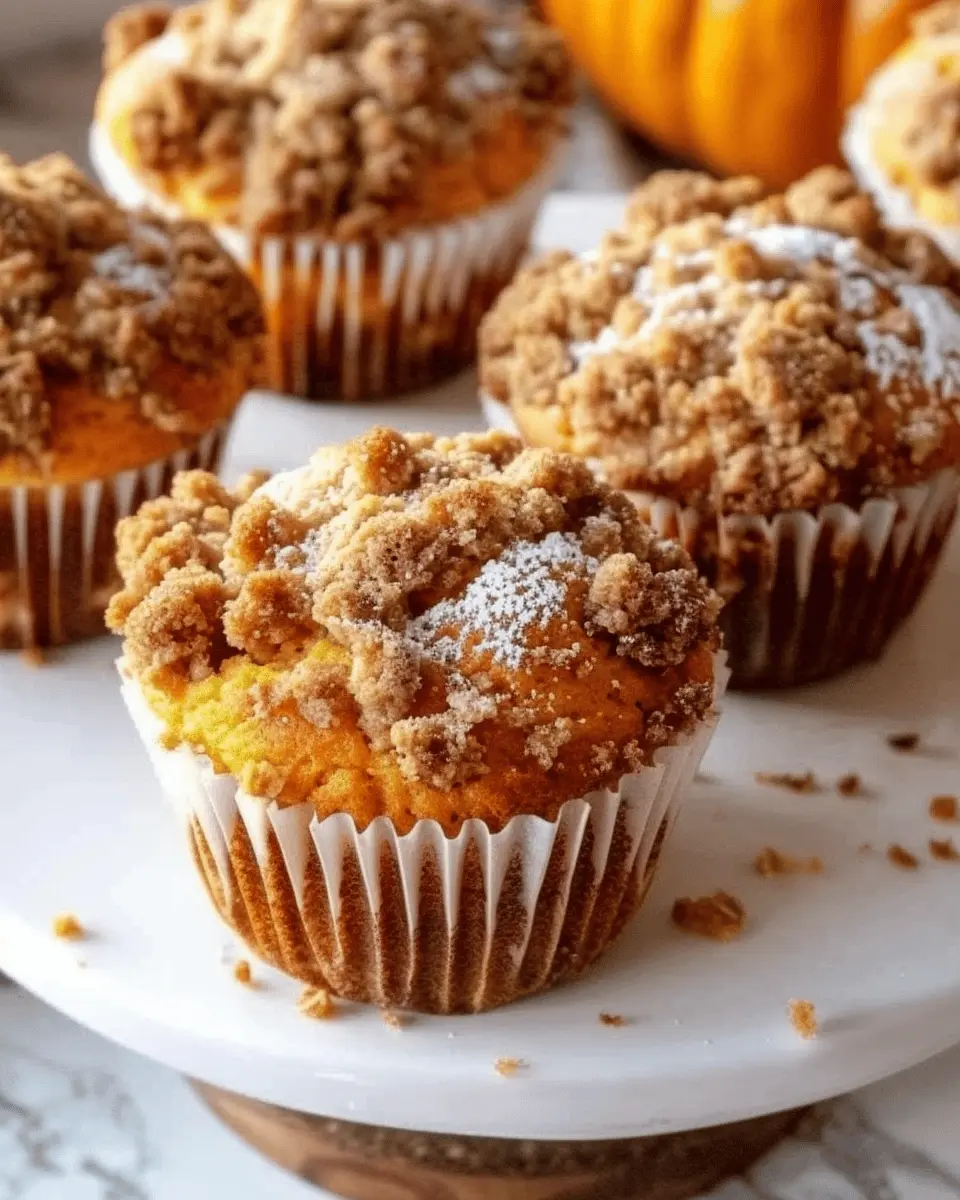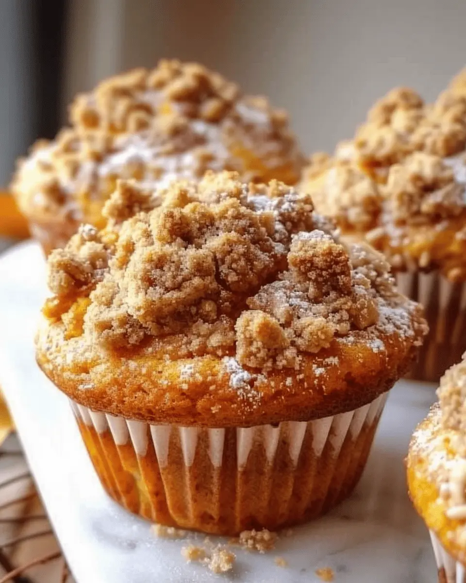 Enjoy the warm and inviting flavors of pumpkin streusel muffins, perfect for a cozy morning treat.