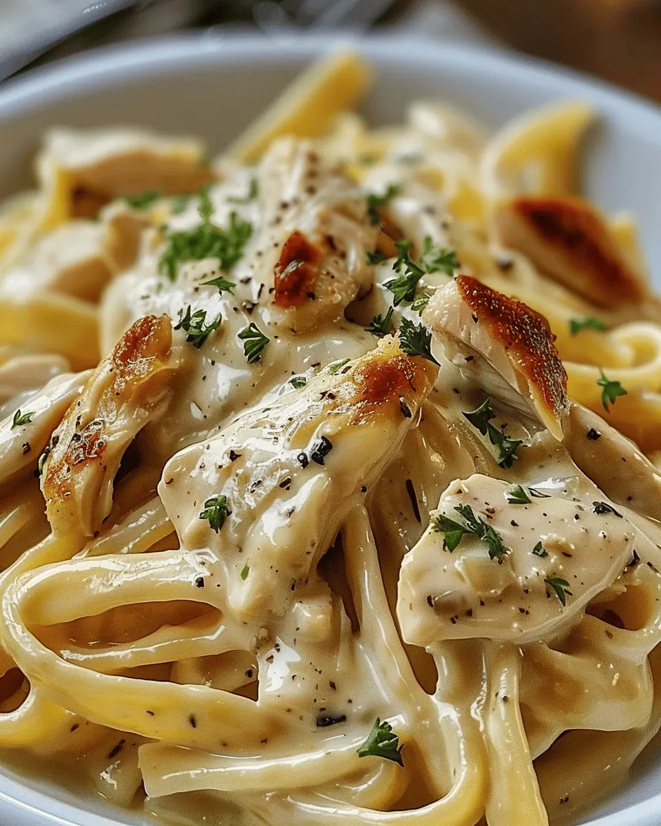 This version not only enhances the rich creamy chicken pasta dish but also adds a gourmet touch that impresses guests and family alike.