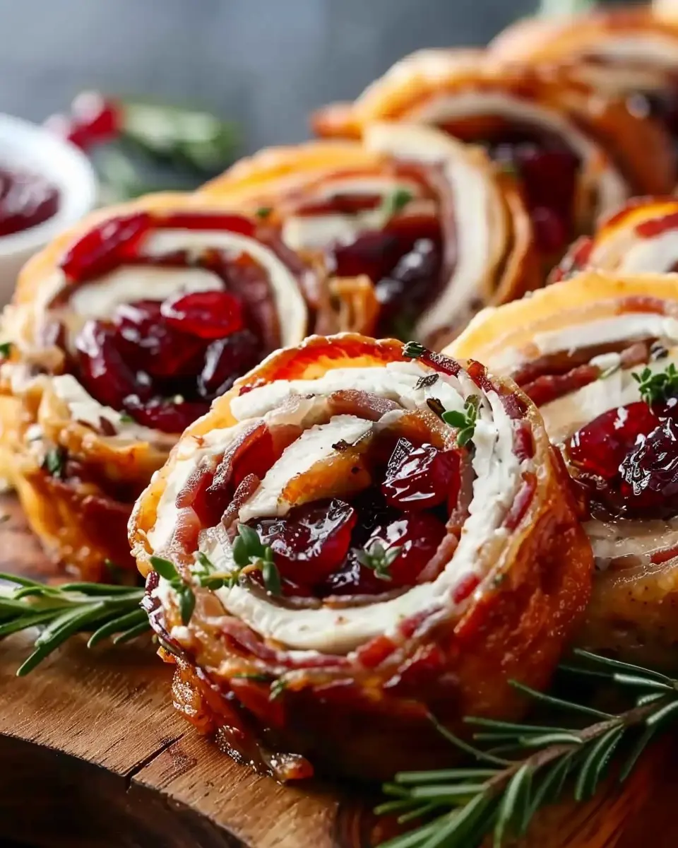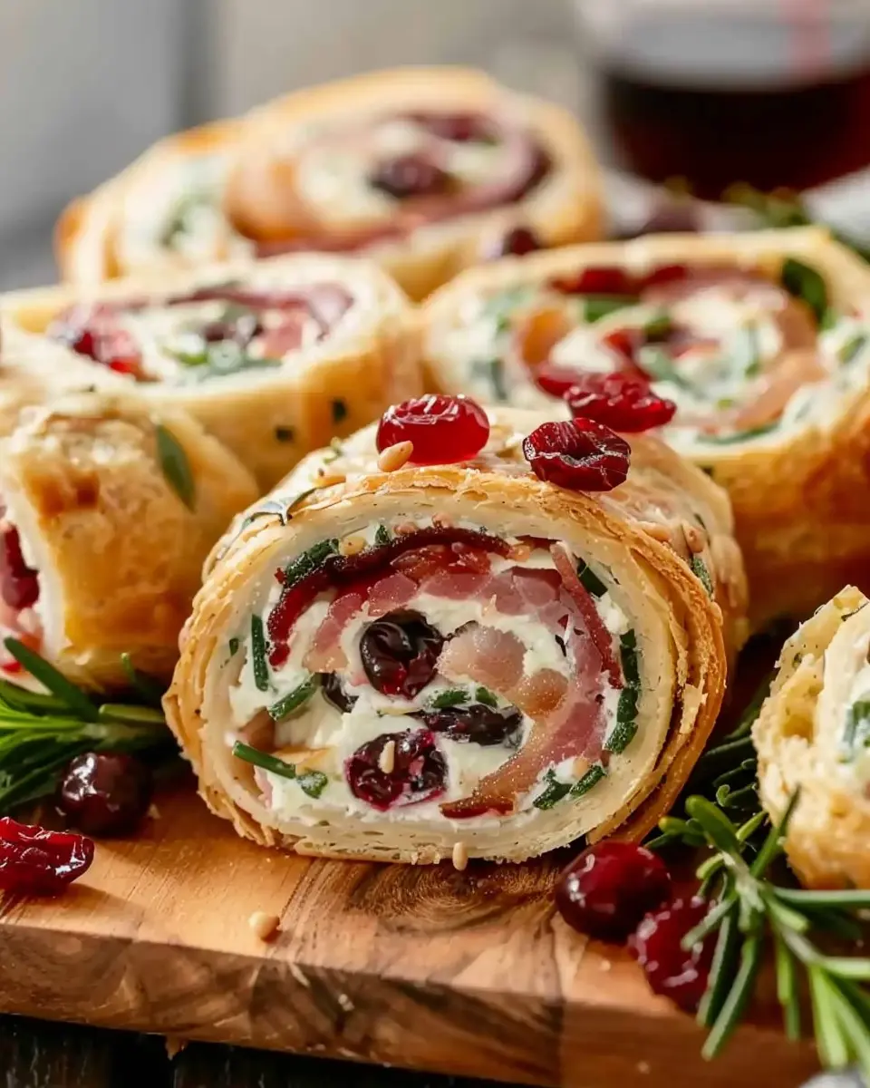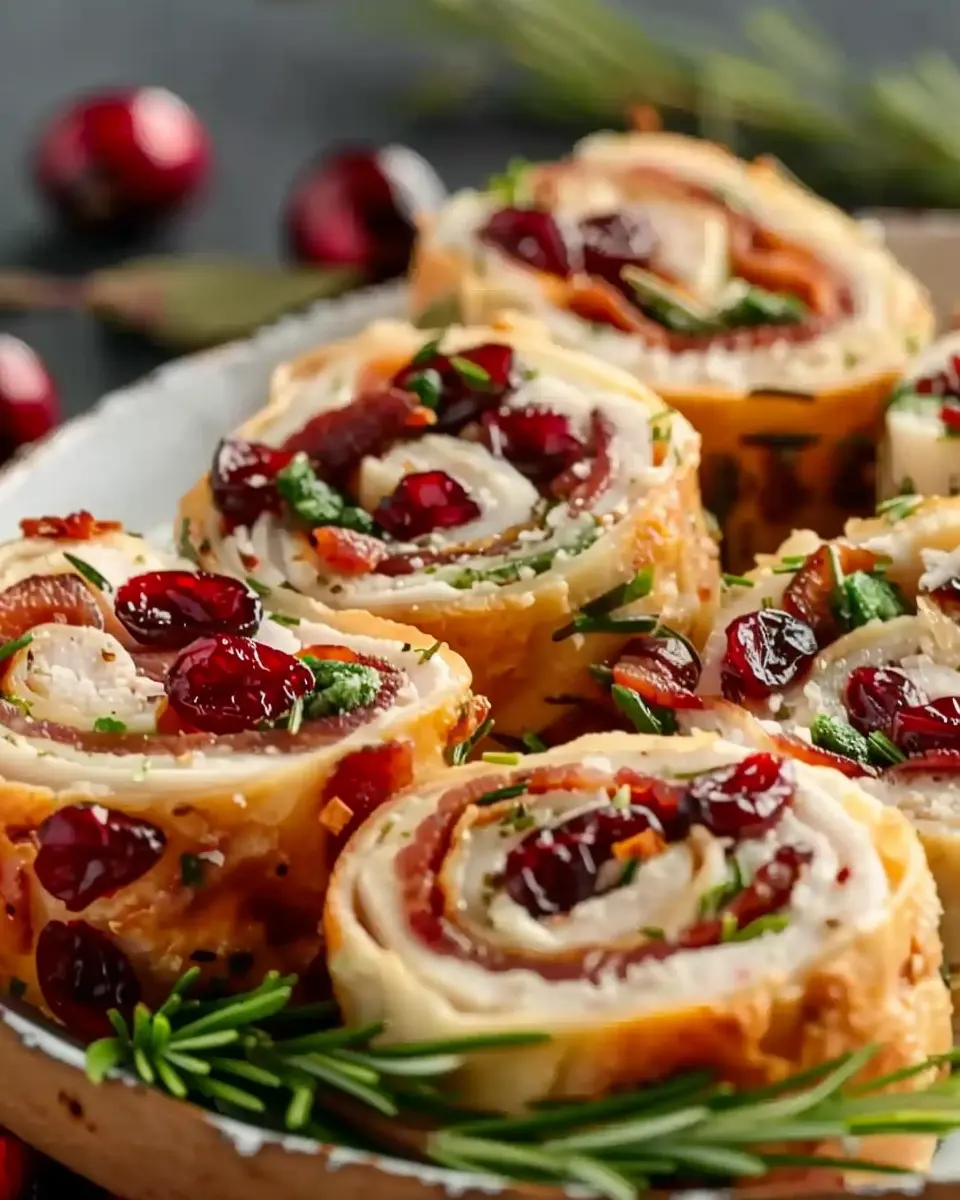 Savory Christmas Cranberry Roll Ups are a delightful treat combining turkey and bacon for a festive appetizer.