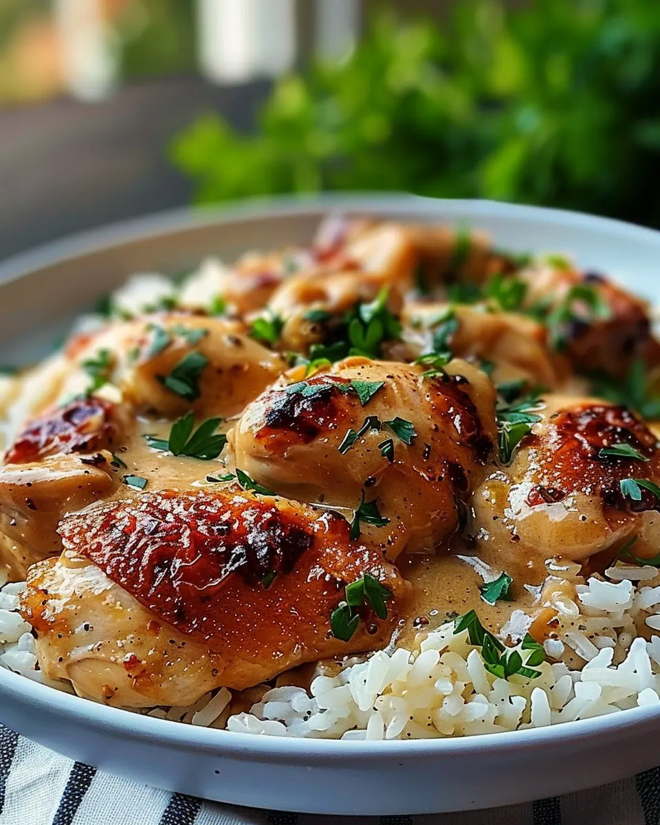 Smothered Chicken and Rice: A Comforting, Juicy Delight
