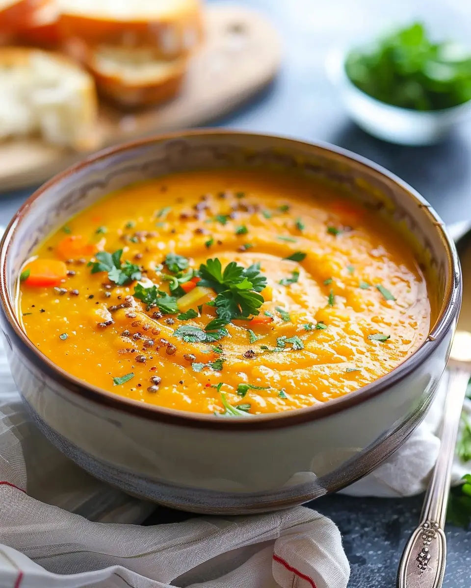 Keywords: Spiced Carrot and Lentil Soup, Comfort Recipe, Vegan Soup