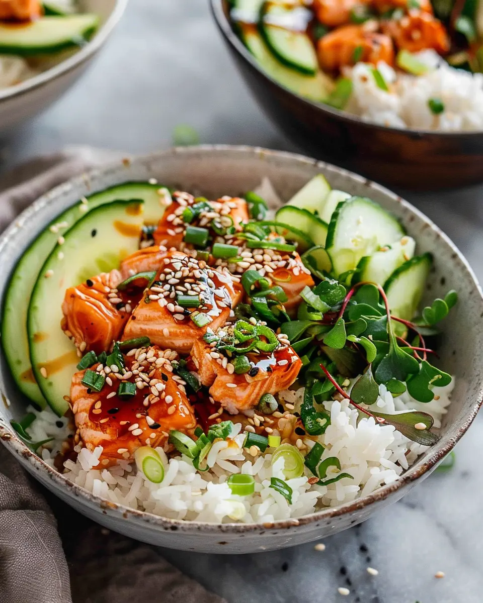 If you want to explore more about the health benefits of salmon, check out Healthline’s guide on omega-3s for more insights. And for sodium recommendations, the CDC has useful information that’s worth a read. Enjoy crafting your spicy salmon bowls!