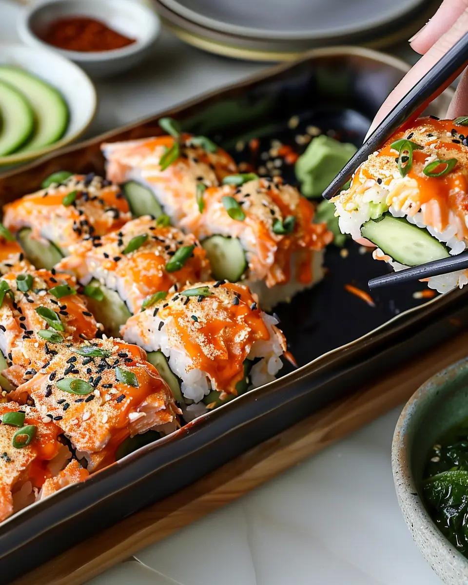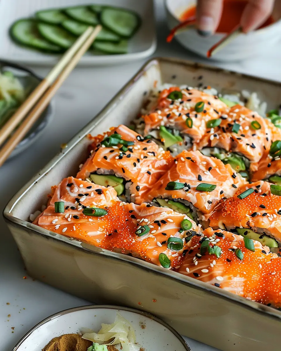 And there you have it! Your spicy salmon sushi bake is ready to be devoured. It’s a dish that combines the essence of sushi with comforting, baked goodness—perfect for any occasion.