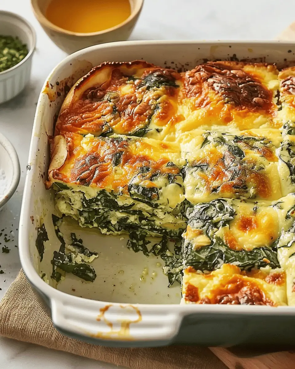 Consider using baby spinach for a milder flavor; it’s a great complement to other ingredients. If you want added richness, you can blanch the spinach in boiling water for a minute, then shock it in ice water. This helps maintain its beautiful color, making your casserole visually appealing.