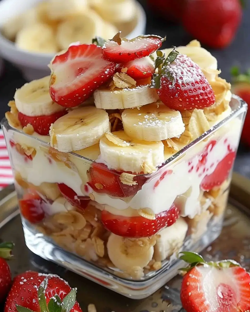 A delightful, creamy dessert that combines the sweetness of strawberries and bananas, perfect for any occasion.
