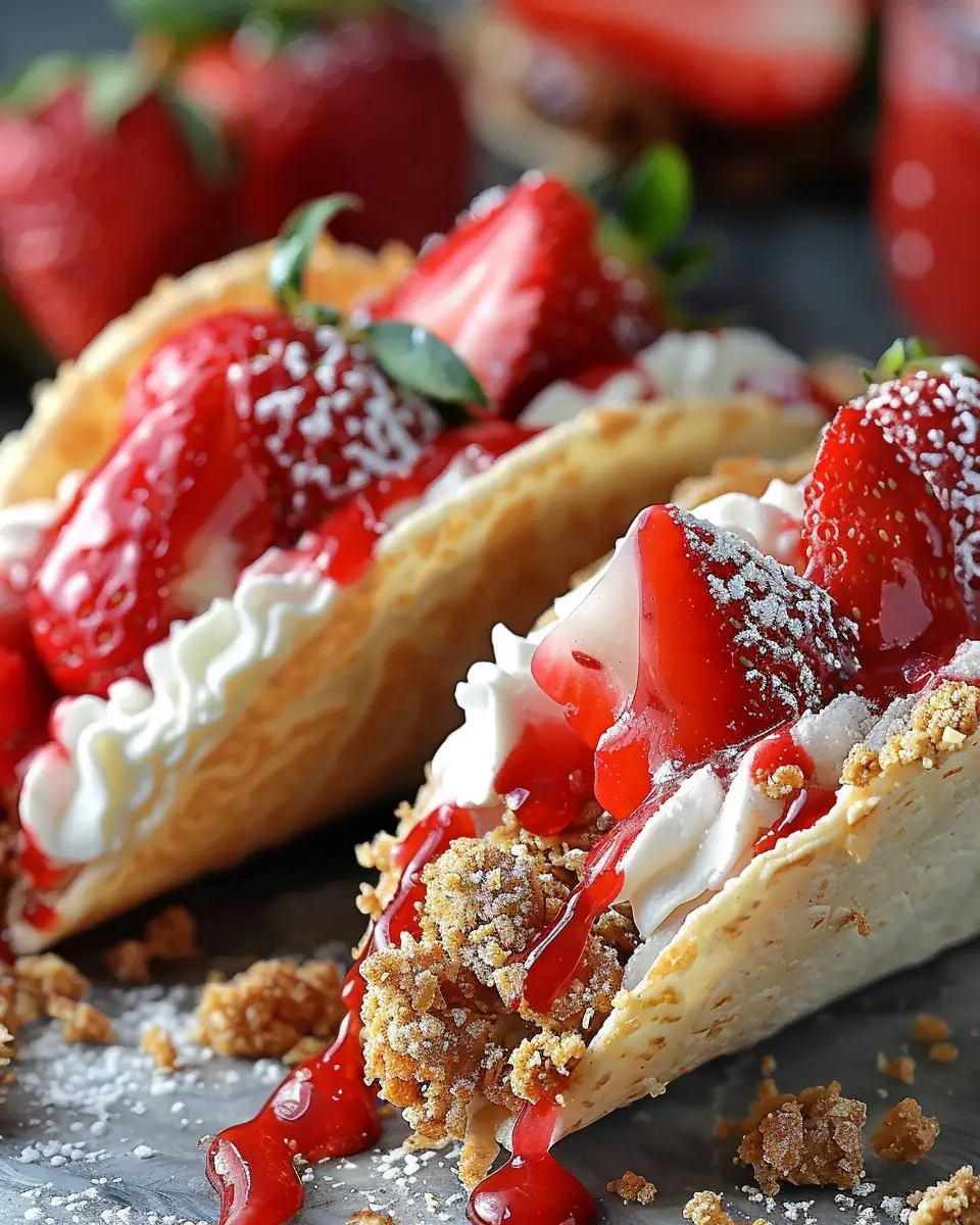 Discover the delightful combination of flavors in these Strawberry Crunch Cheesecake Tacos, perfect for any dessert lover.
