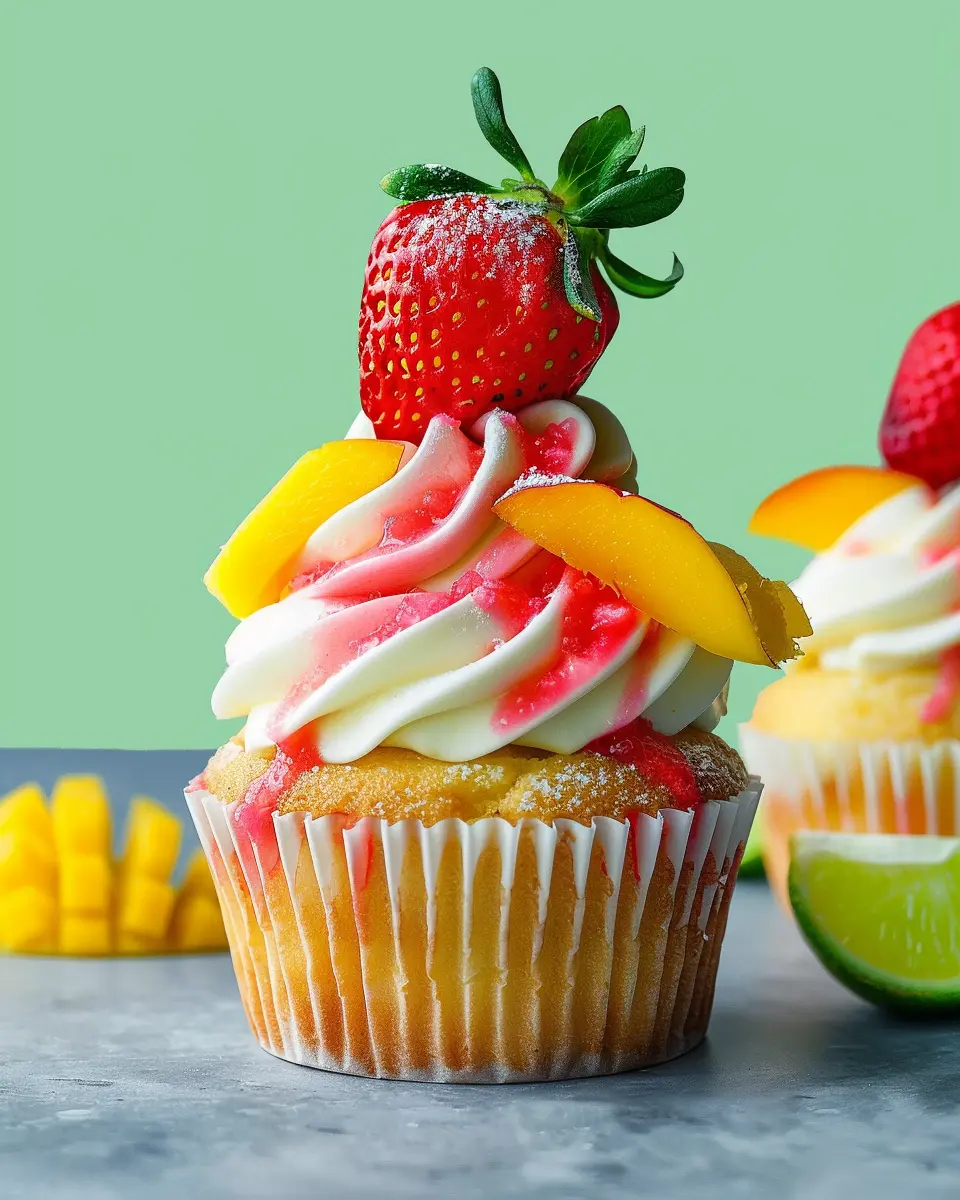 Delicious and refreshing strawberry mango margarita cupcakes perfect for summer gatherings.