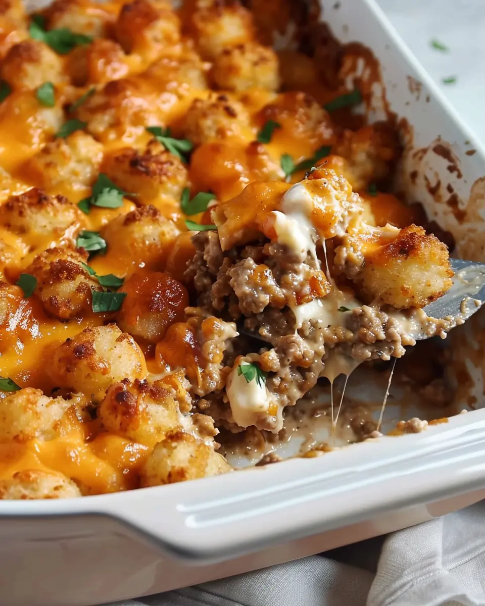 And there you have it—a delightful tater tot casserole, perfect for any occasion. Whether you’re serving friends or enjoying a cozy night in, this dish brings warmth and joy to any table. Enjoy every cheesy, crispy bite!