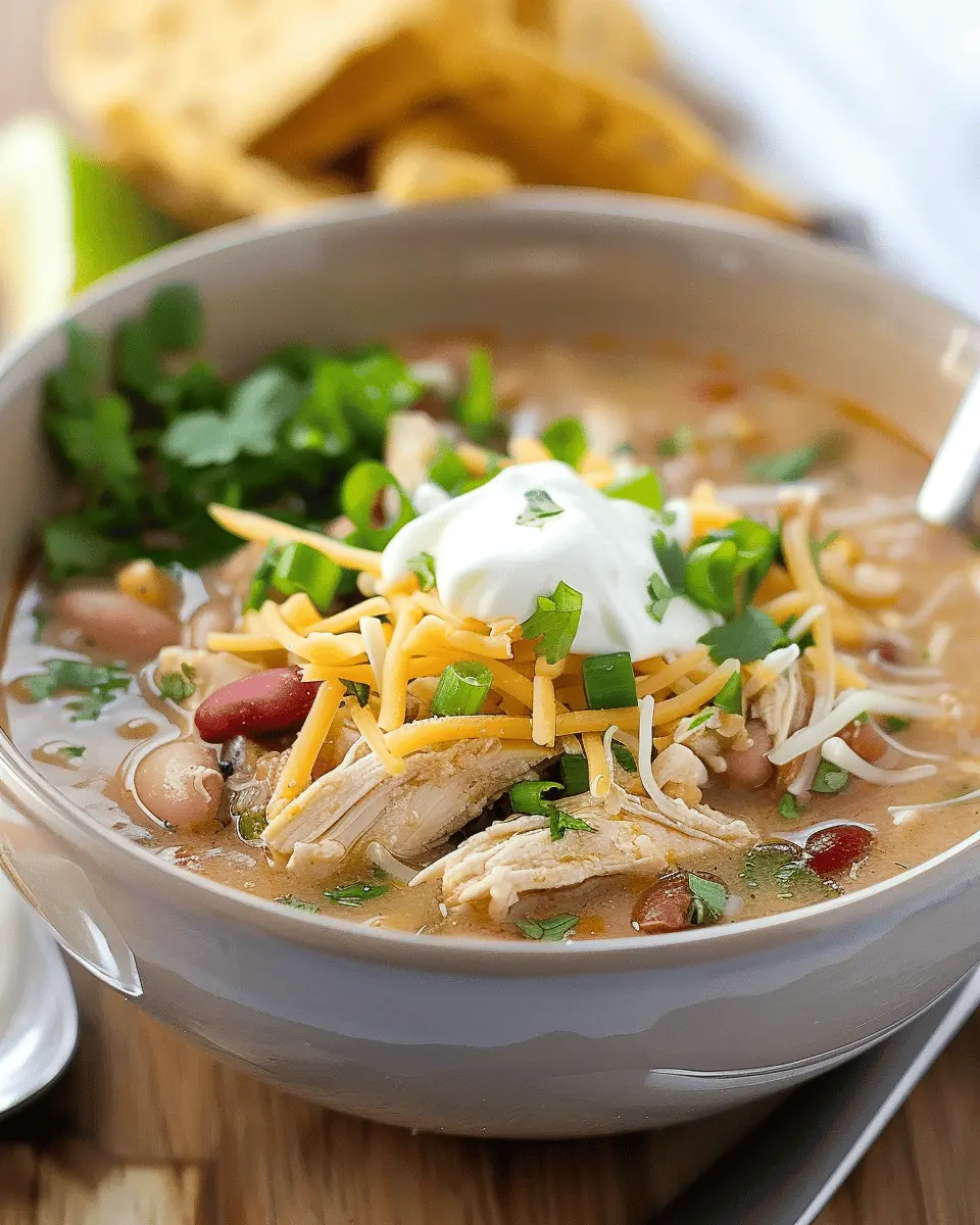 Now for the best part—serving! Ladle your delicious white chicken chili into bowls and let each person customize their experience. Some popular toppings include: